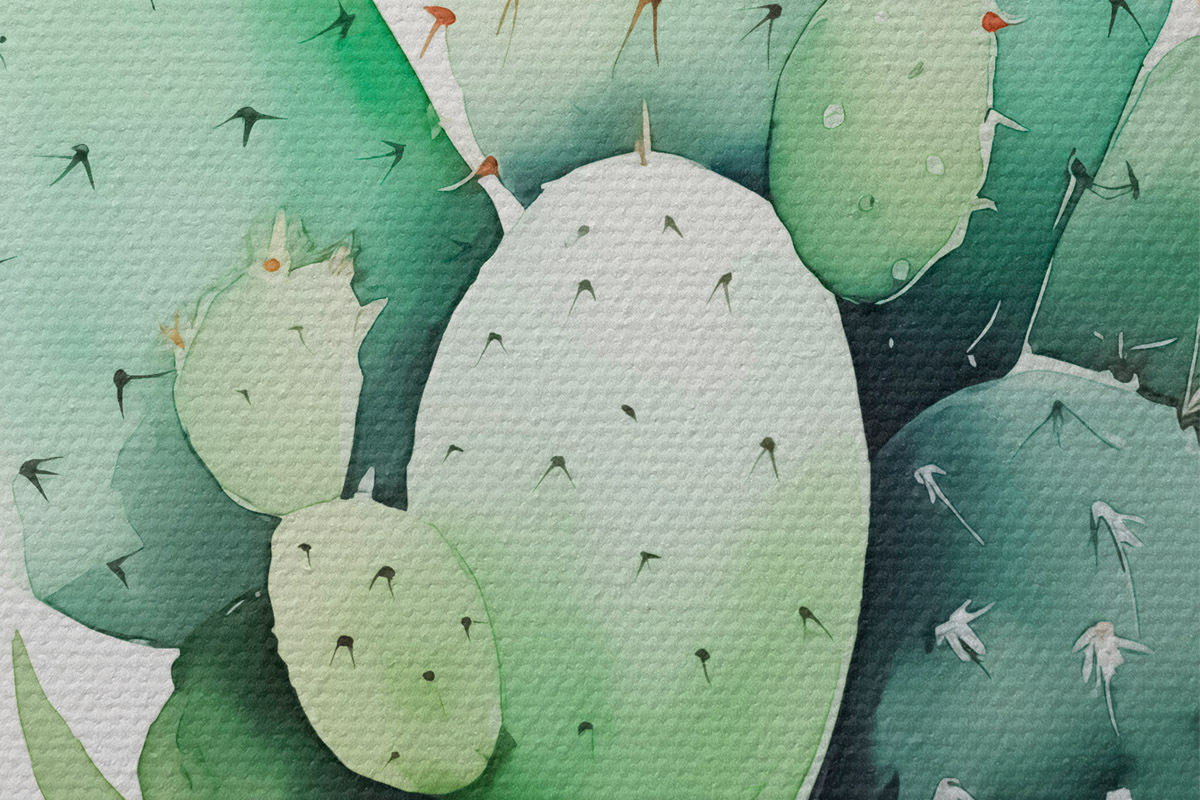 Picturi rotunde Cactus imitație acuarelă umedă Nr r42410