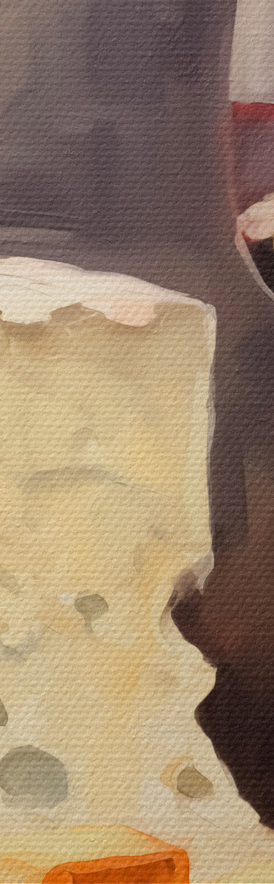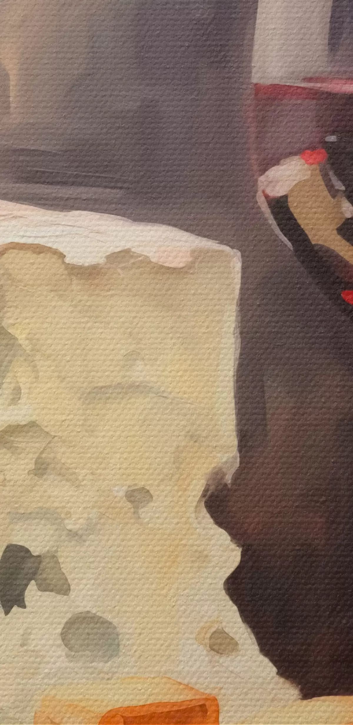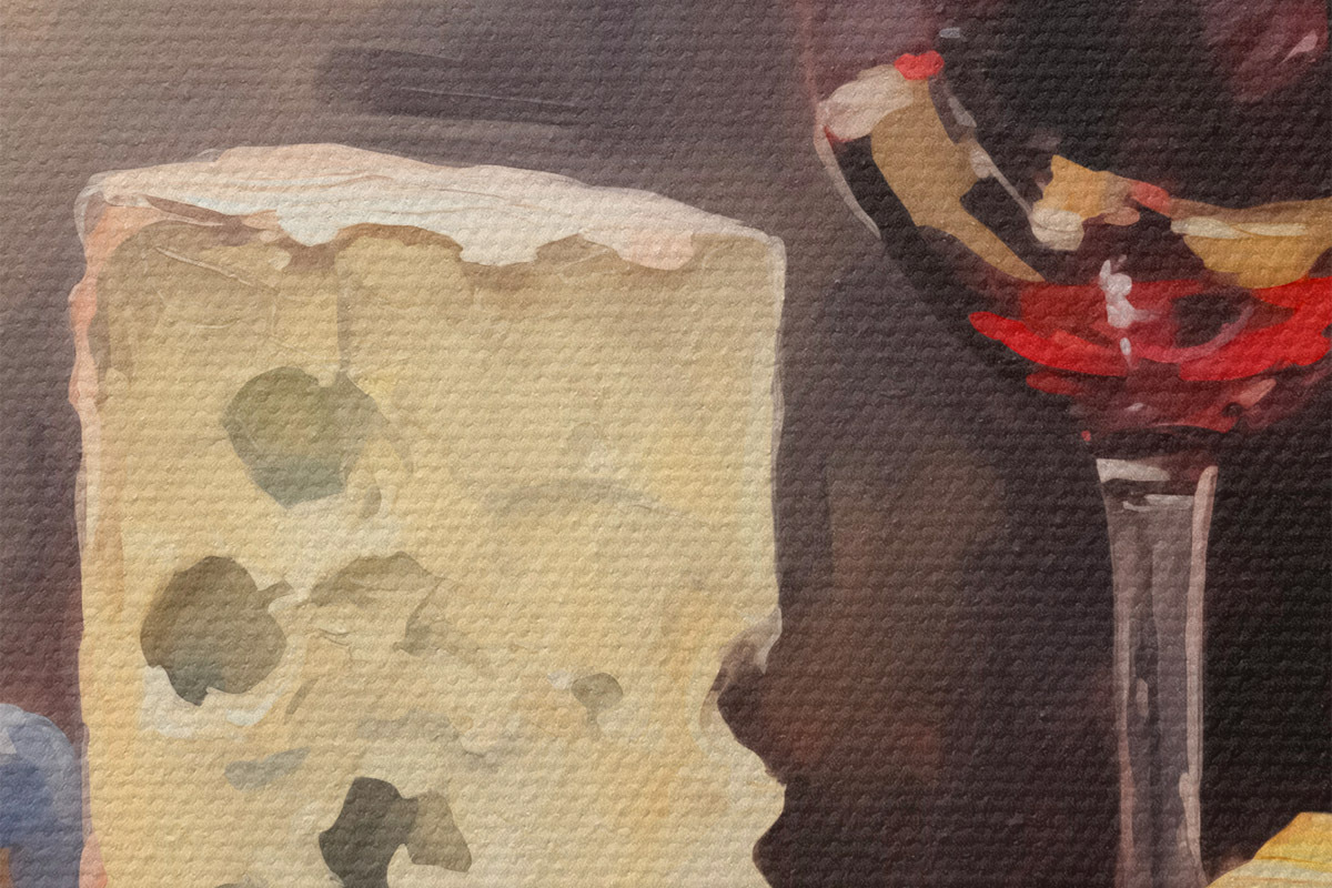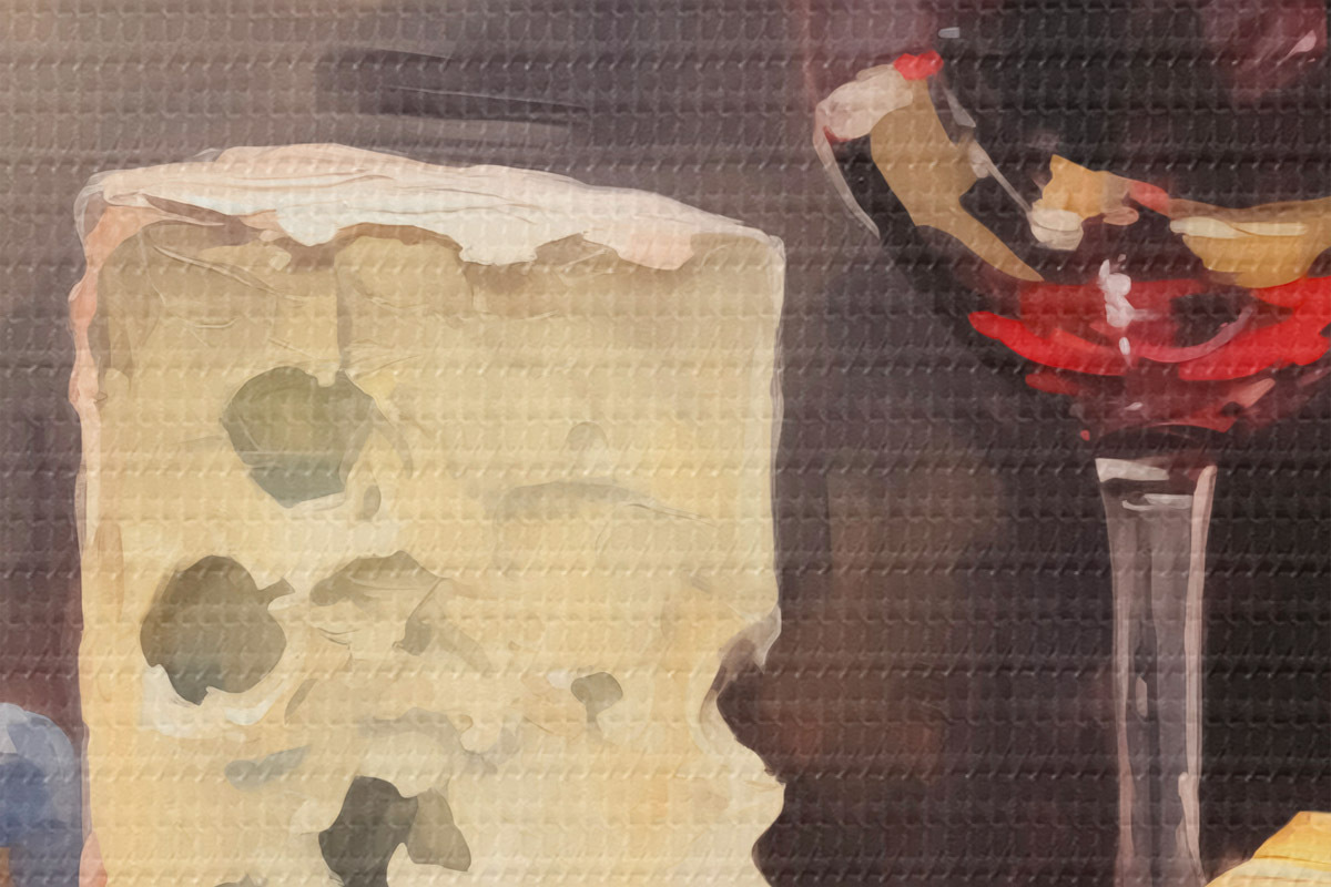 Picturi rotunde Pahar de vin roșu și brânzeturi imitare pictură Nr r42415