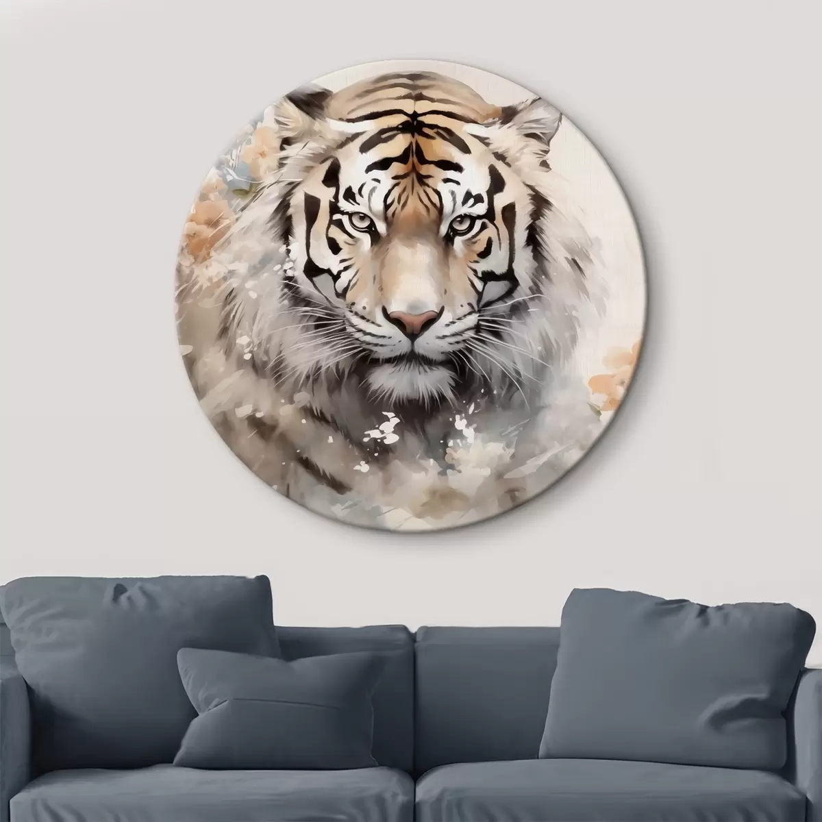 Picturi rotunde Portret abstract al unui tigru printre pete Nr r42421