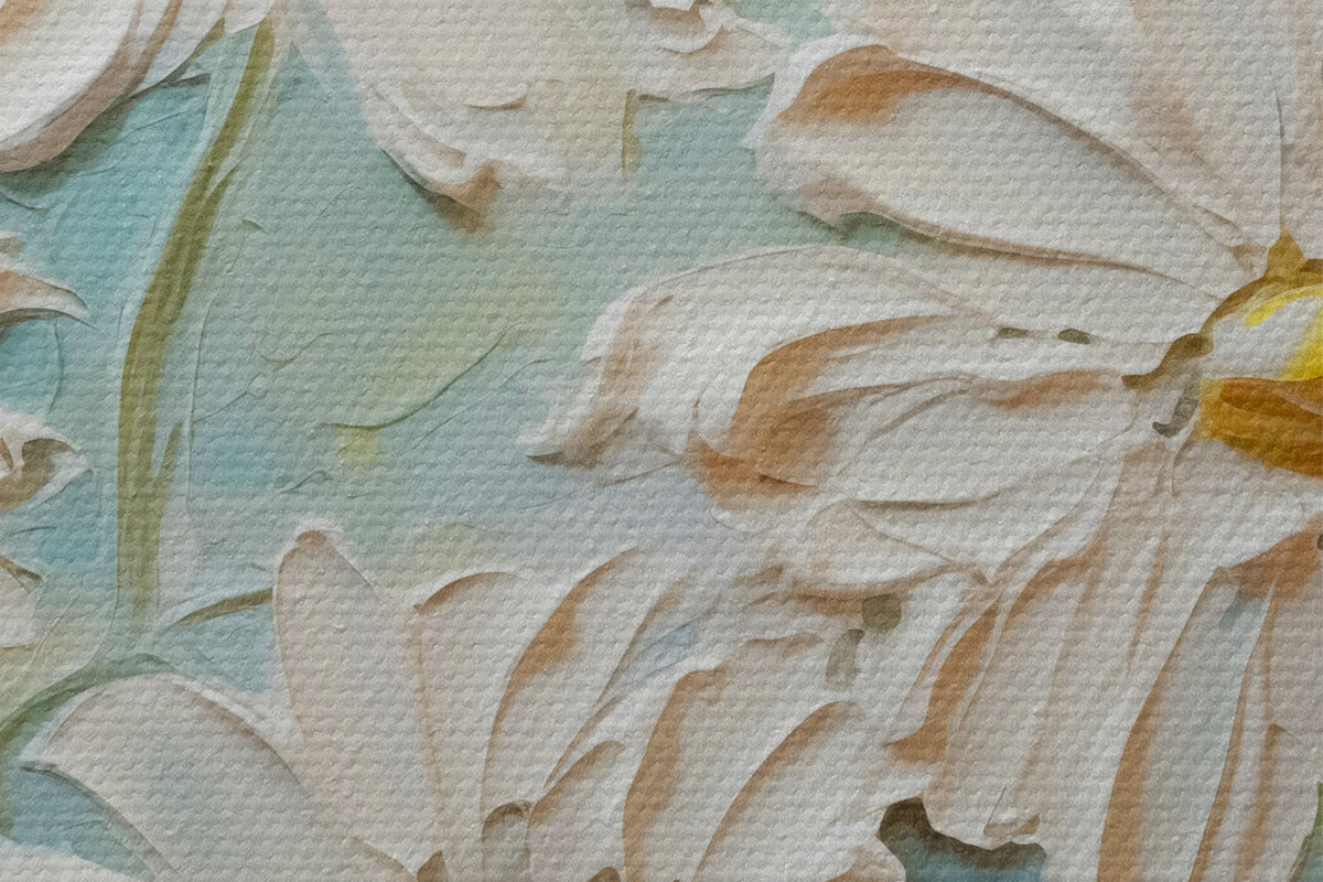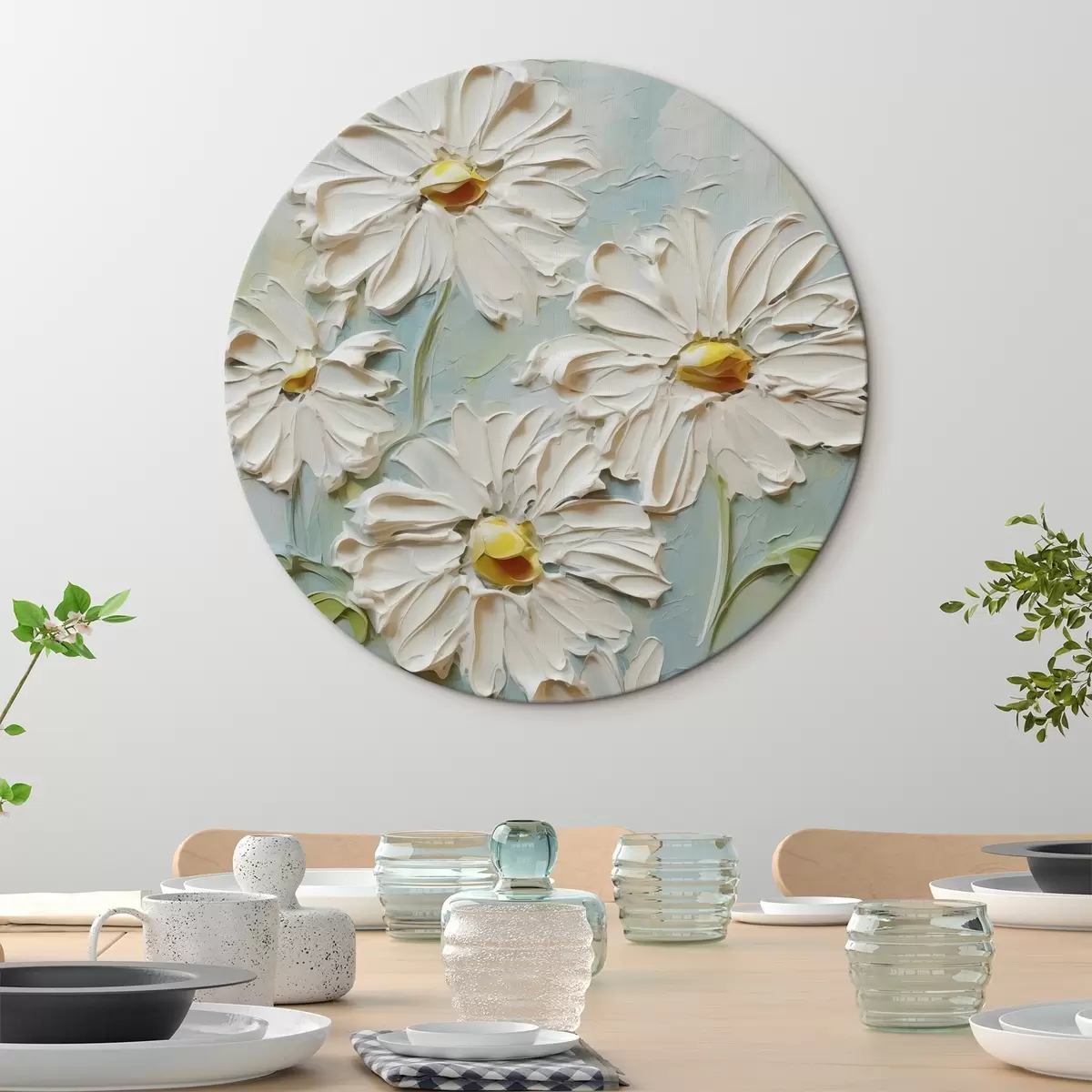 Picturi rotunde Margarete albe imitație de lovituri de vopsea r42422