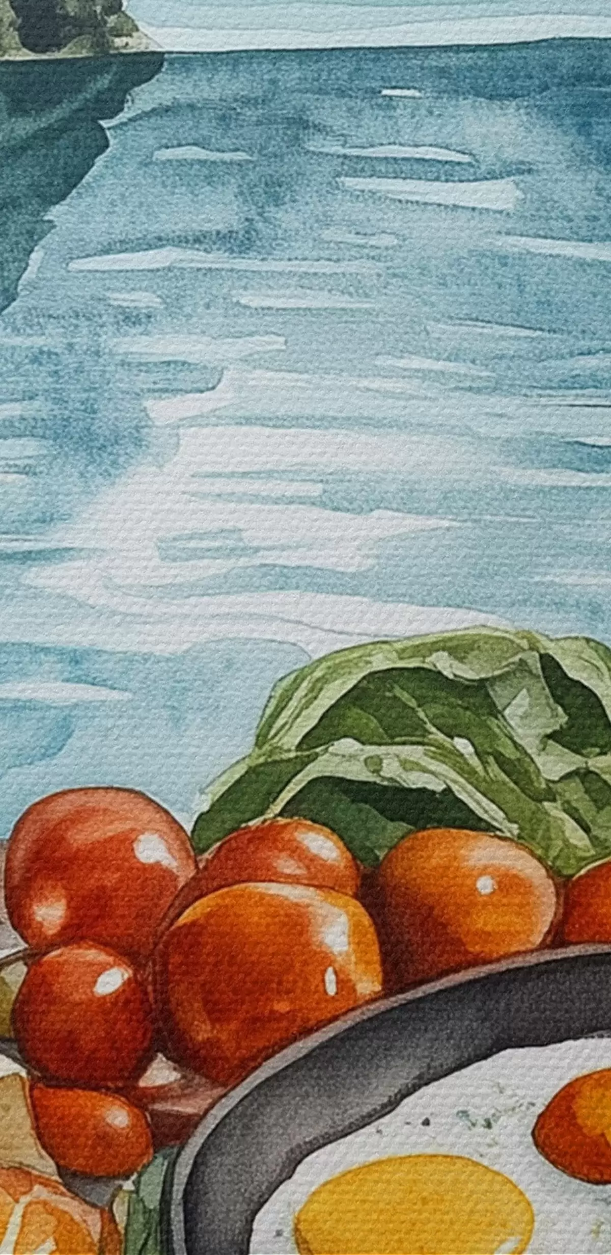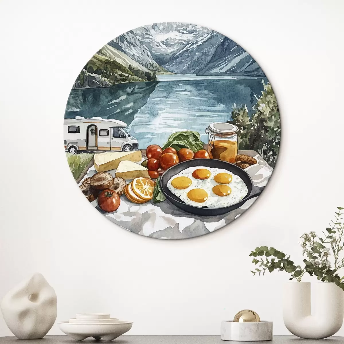 Picturi rotunde Călătorii, peisaje naturale, stil acuarelă, Norvegia, mic dejun, dubă Nr r42431