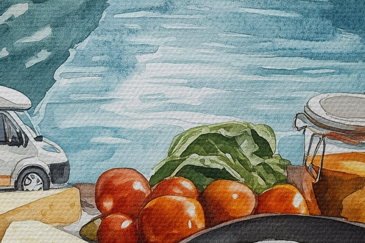 Picturi rotunde Călătorii, peisaje naturale, stil acuarelă, Norvegia, mic dejun, dubă r42431