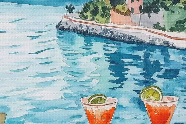 Picturi rotunde Lacul Como, Italia, stil acuarelă, pizza, cocktailuri, oraș vechi, munți r42437