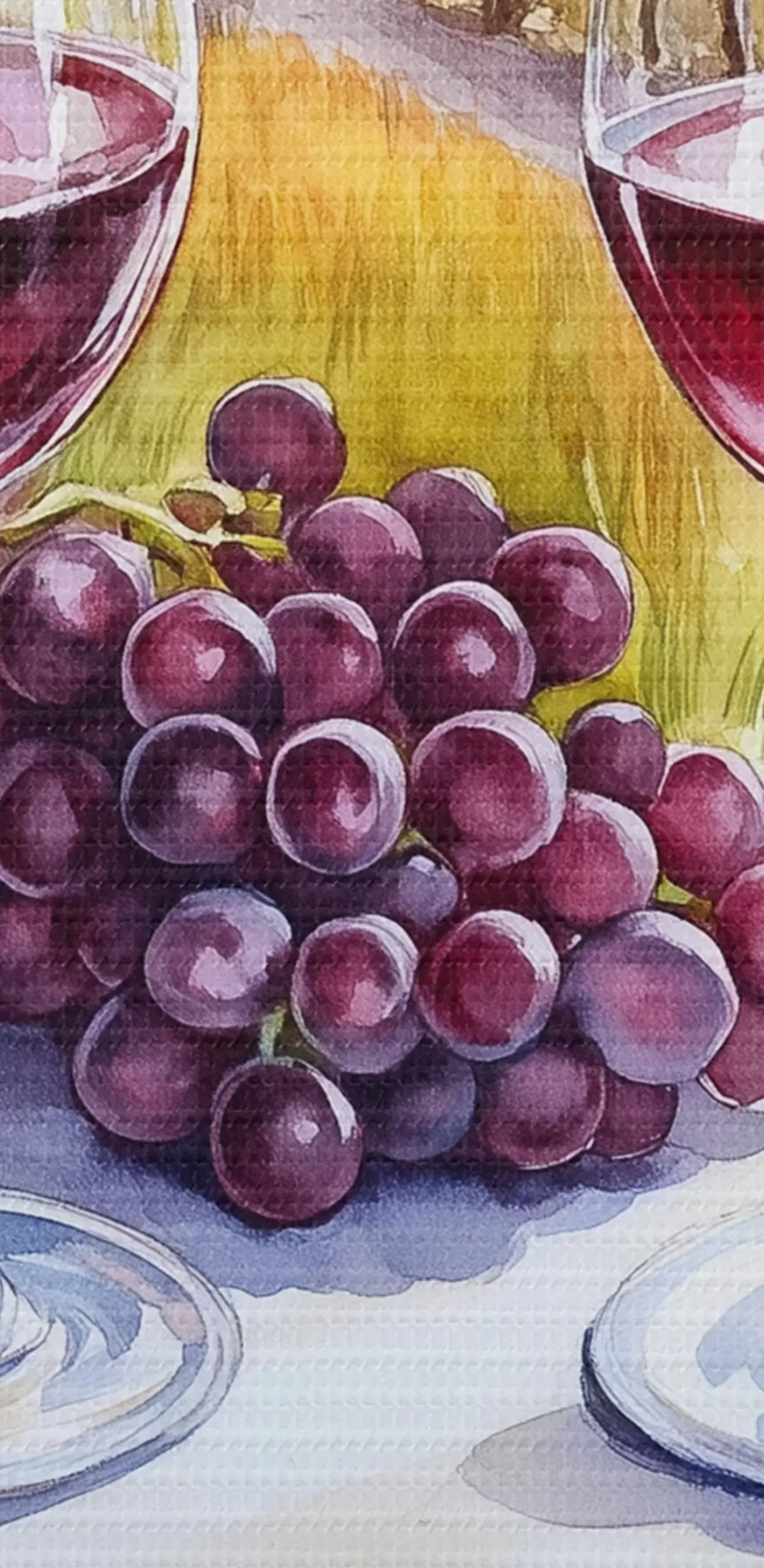 Picturi rotunde Toscana peisaje, stil acuarelă, pahare de vin, struguri, apus de soare Nr r42439