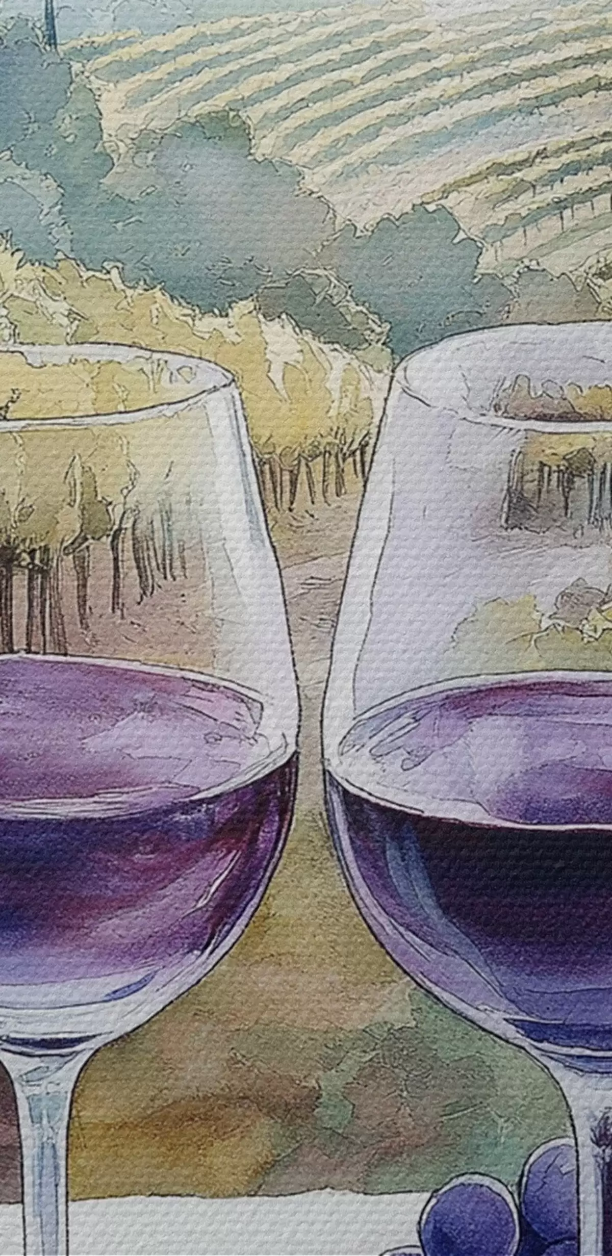 Picturi rotunde Stil acuarelă Toscana peisaje, curți de vin, struguri Nr r42440
