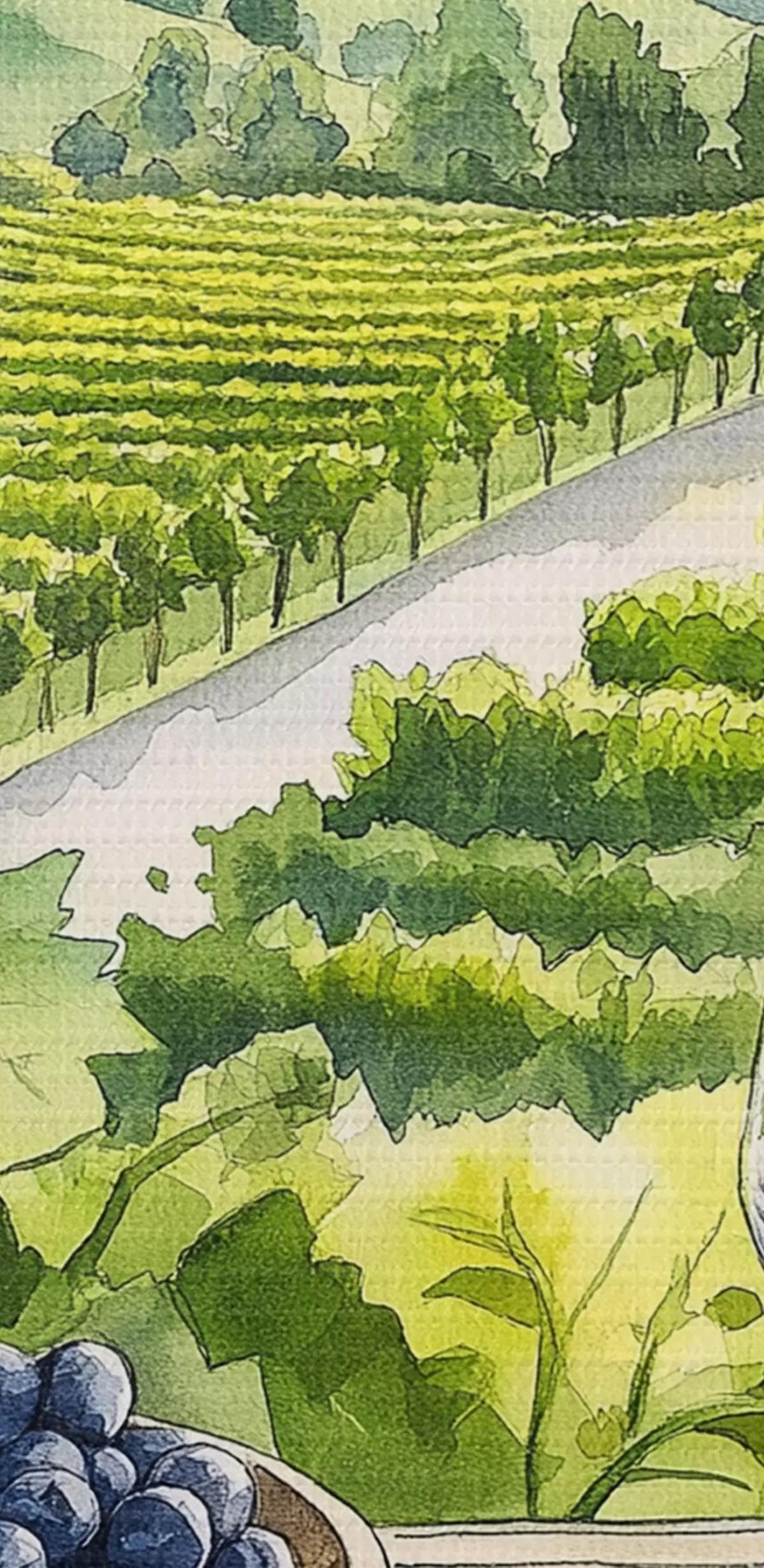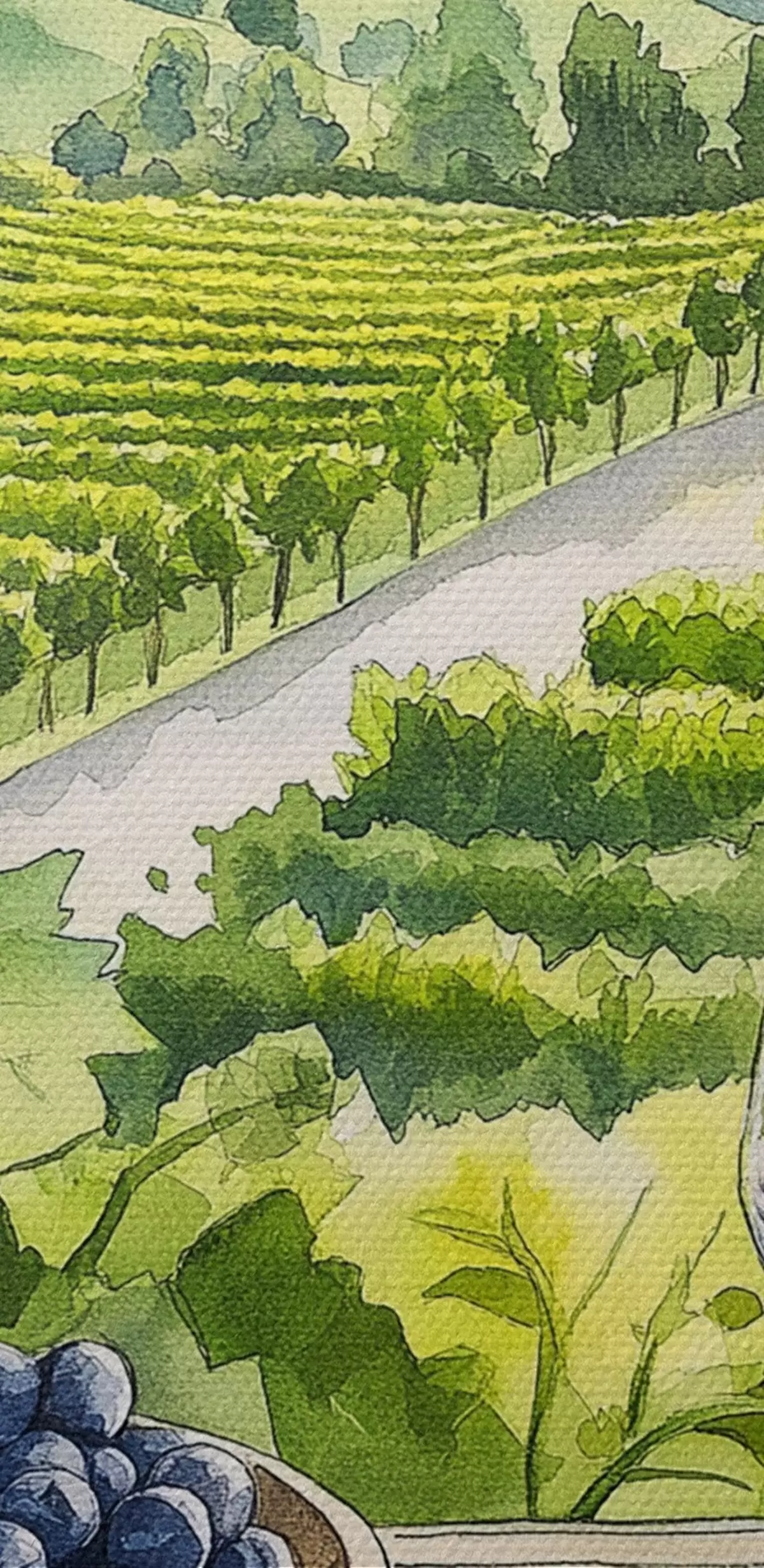 Picturi rotunde Gpape yards, peisaje în stil acuarelă, ochelari de vin r42444