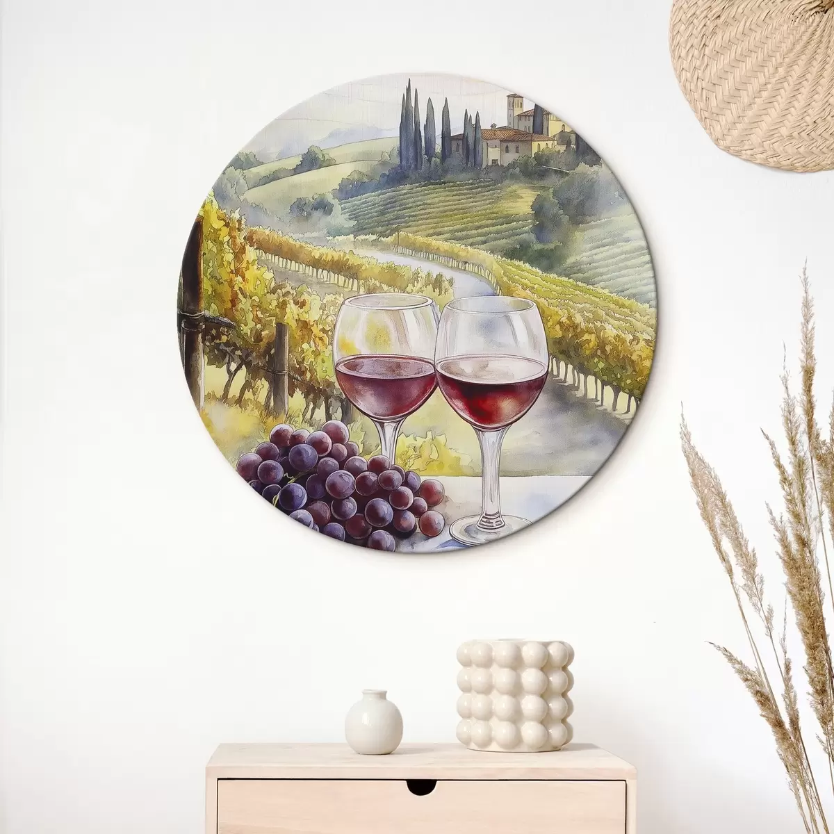 Picturi rotunde Apus de soare în Toscana, vinărie, arhitectură veche, stil acuarelă, Italia Nr r42446