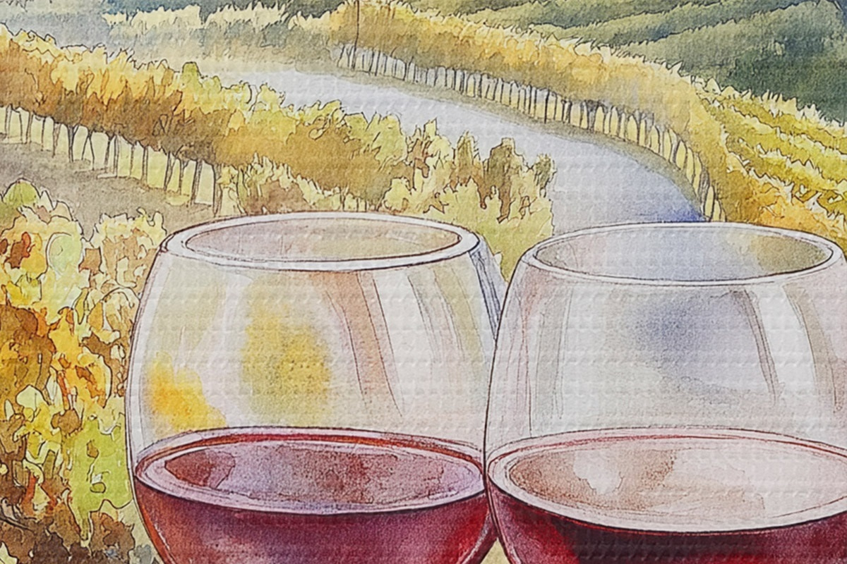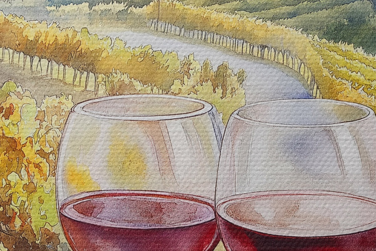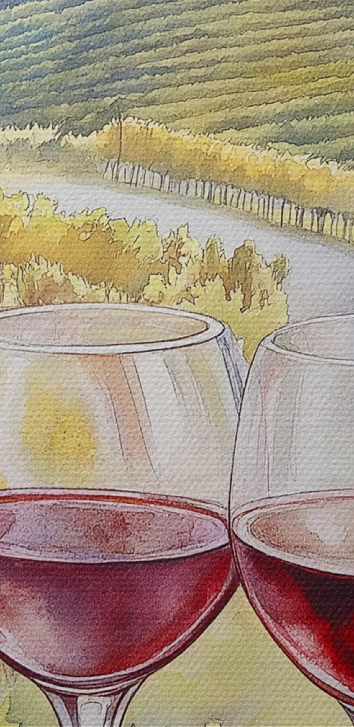 Picturi rotunde Apus de soare în Toscana, vinărie, arhitectură veche, stil acuarelă, Italia r42446