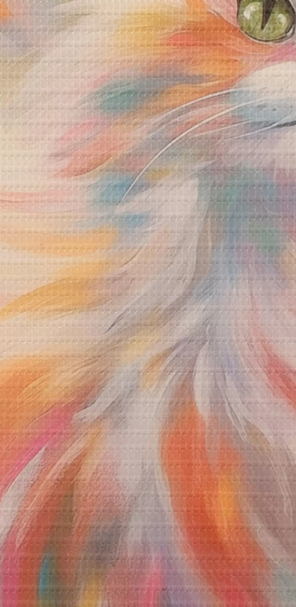 Țesătura fină a firelor de pe această pânză seamănă cu suprafața pânzelor artiștilor profesioniști.