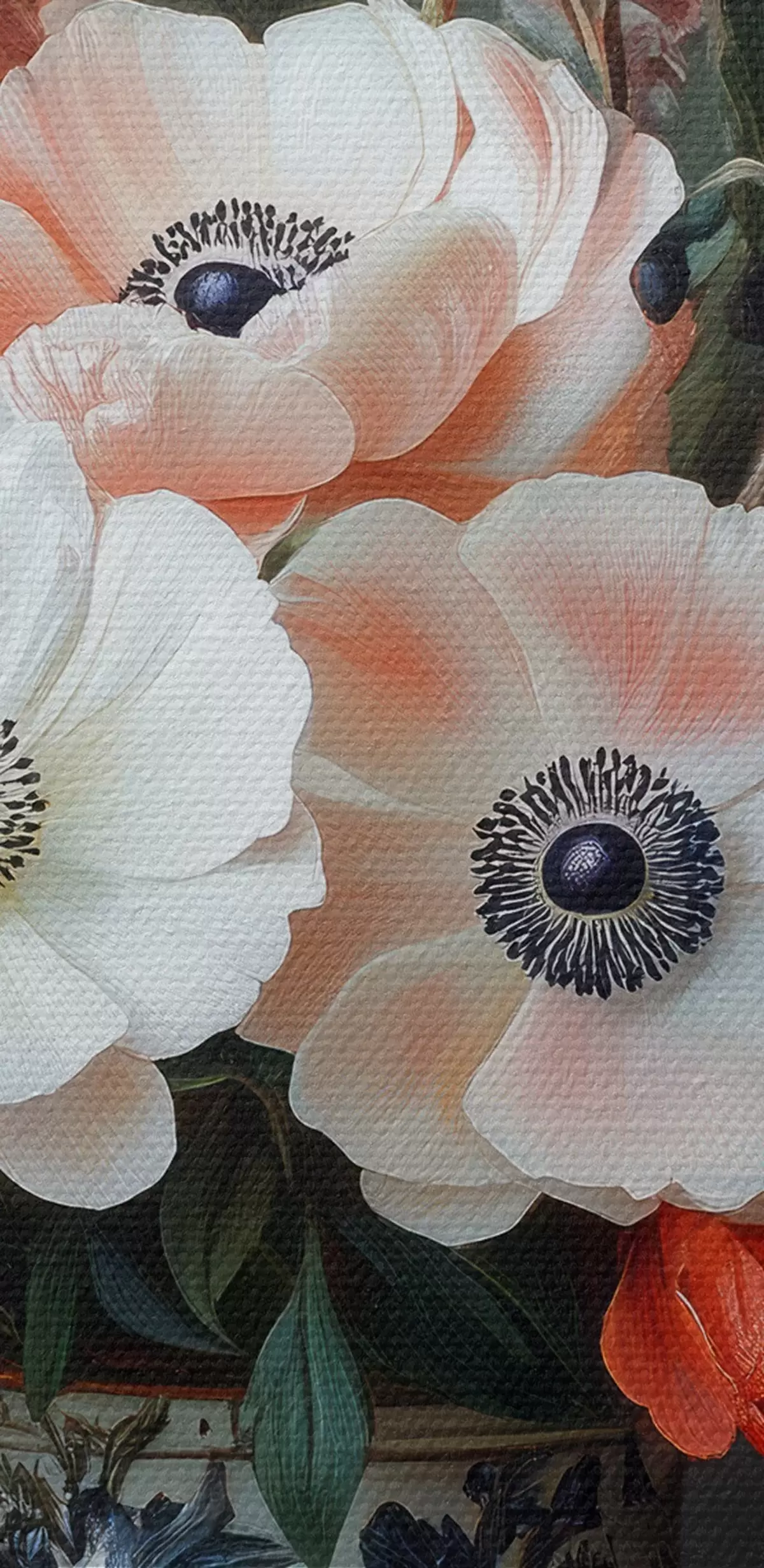 Trei tipuri de materiale sunt disponibile pentru comandă: Economic Canvas - un material dens și durabil pentru imprimarea digitală, identic cu pânza de pictor, suprafață impermeabilă, reproducere realistă a detaliilor, material cu granulație medie. Premium Canvas - textura seamănă cu cea a pânzei unui pictor (fire mici împletite). Reproducere moale, detaliată a imaginii pe o suprafață mată. Eco-Premium - țesătură 100% bumbac de înaltă calitate. Datorită fibrelor naturale de bumbac, materialul este durabil și rezistent la uzură. Reproducere excelentă a culorilor și a detaliilor.