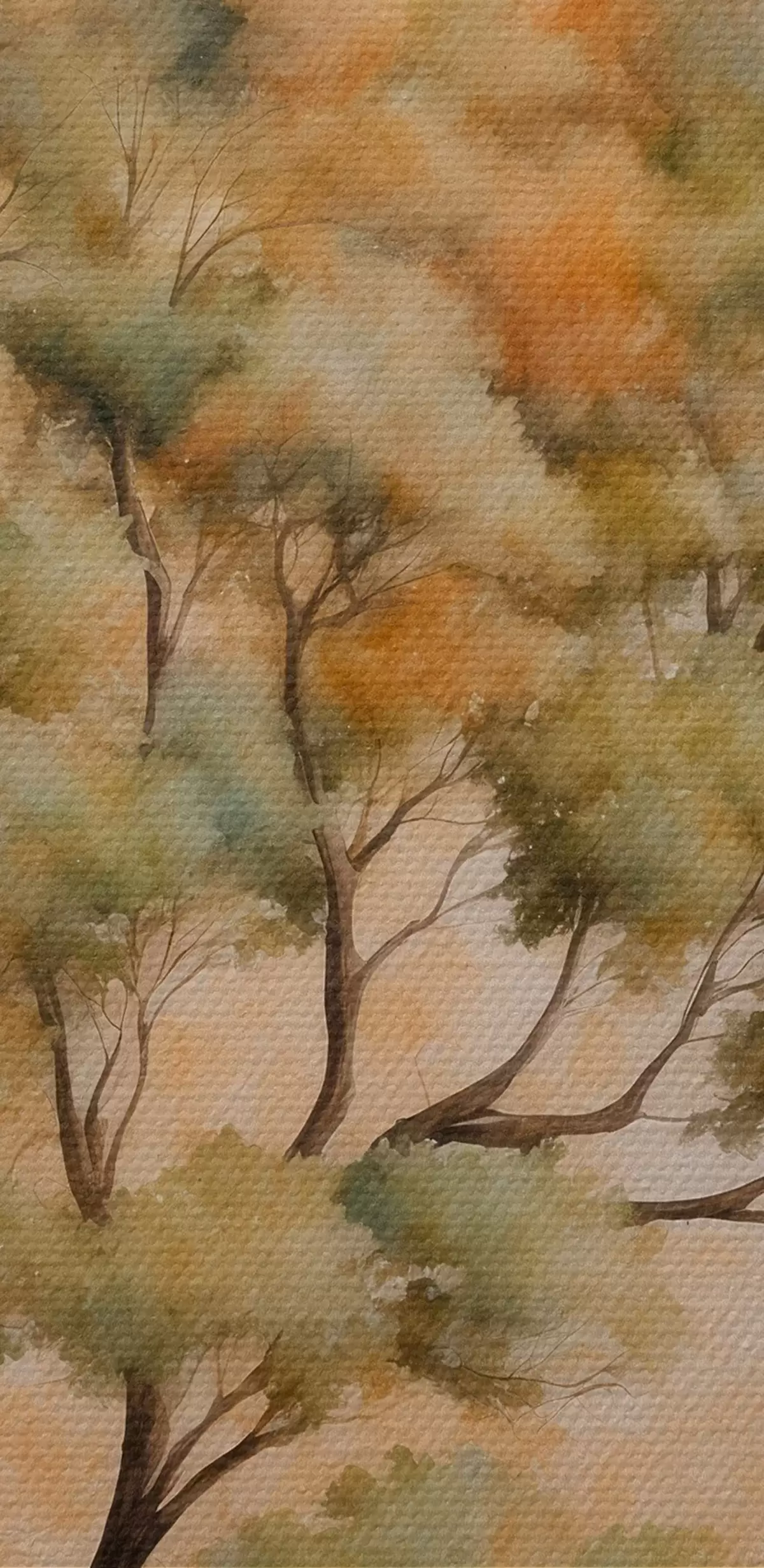 Picturi rotunde Copac pe fundal portocaliu și alb în stil acuarelă pictură Nr r42514