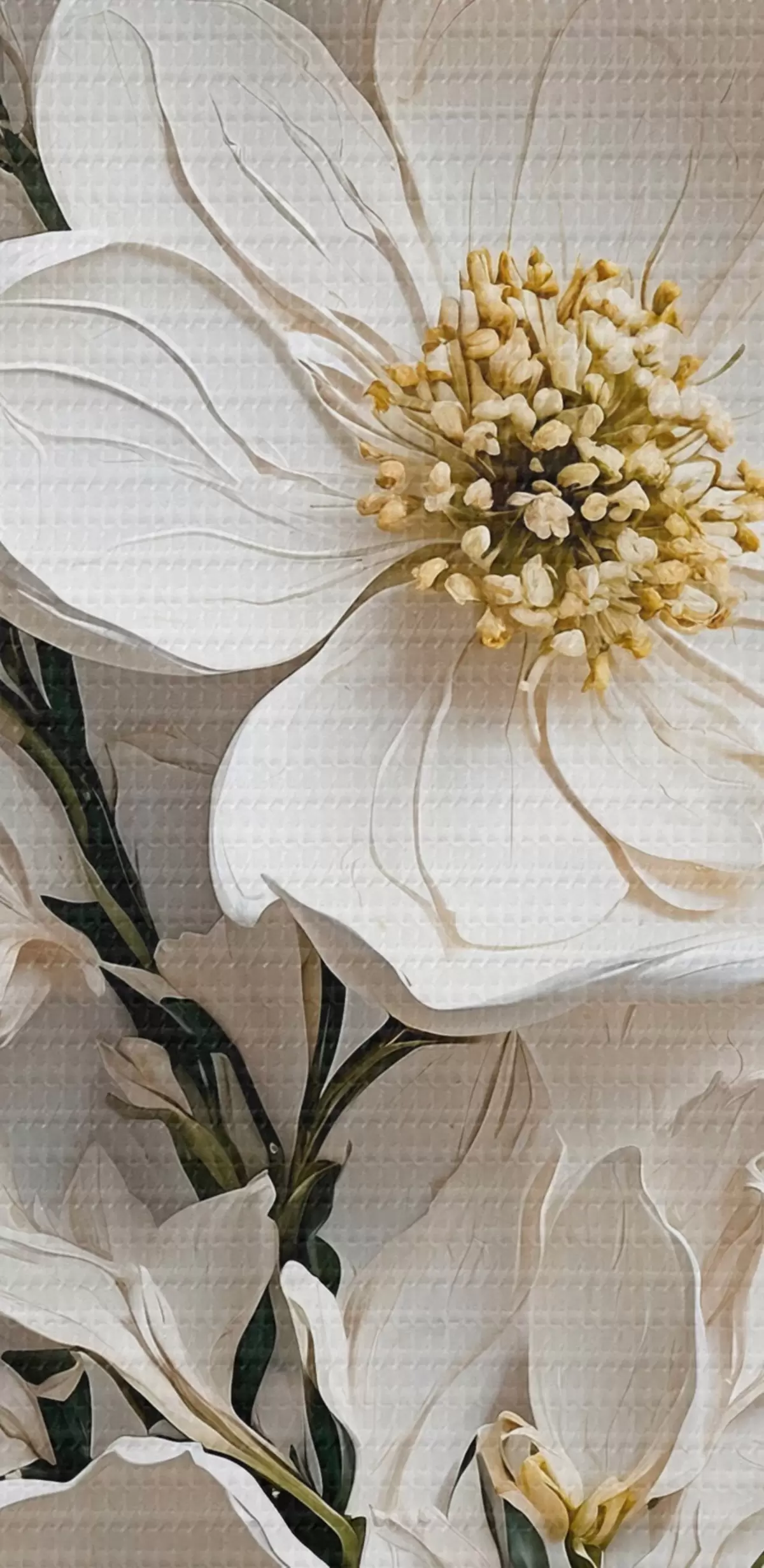Picturi rotunde Flori albe și tulpini în stilul picturii în ulei Nr r42546