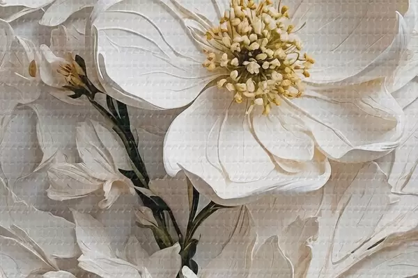 Picturi rotunde Flori albe și tulpini în stilul picturii în ulei Nr r42546