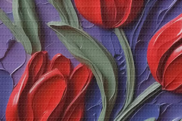 Picturi rotunde Lalele roșii pe imitație violet brushstrokes Nr r42584