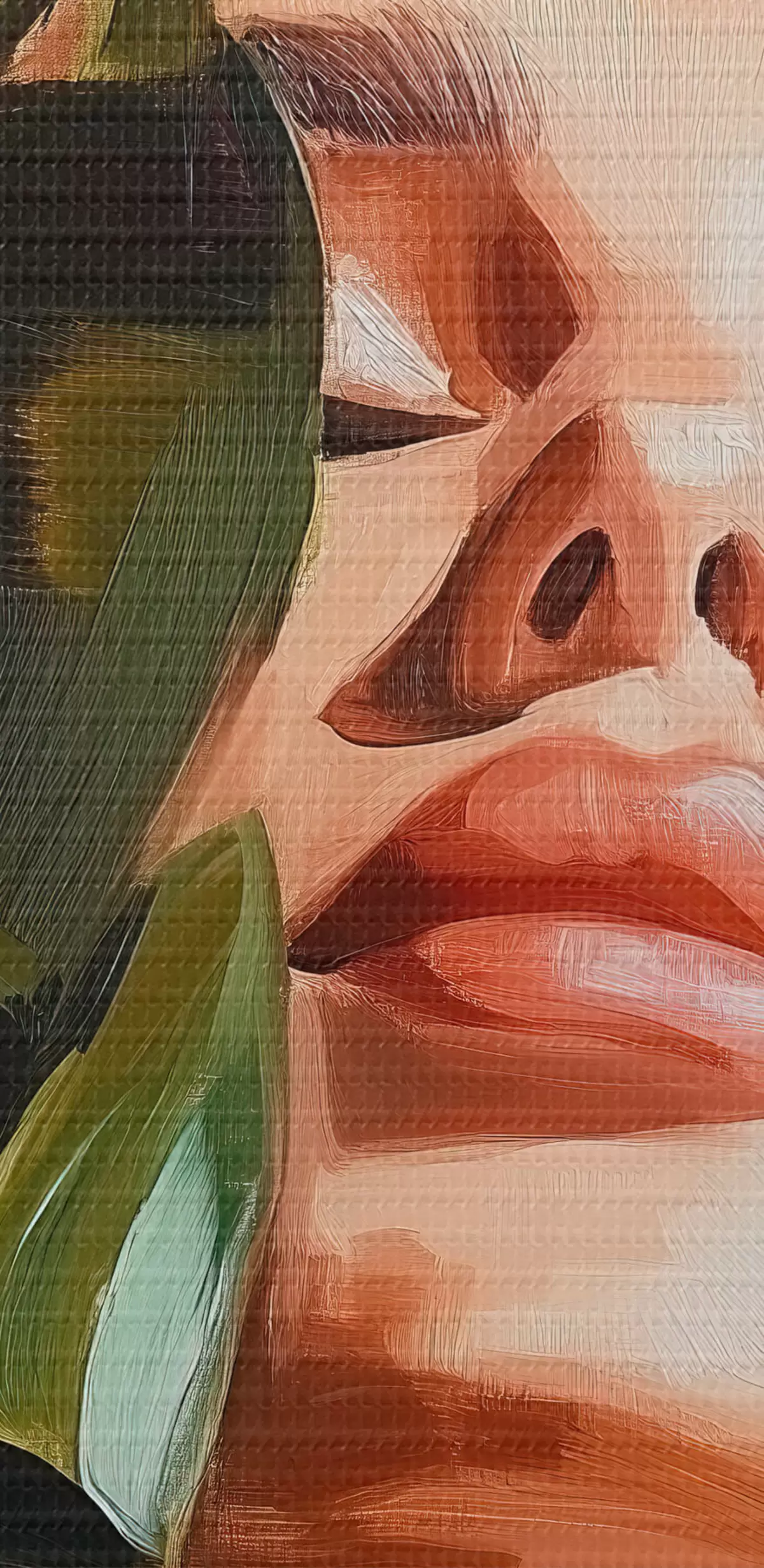 Picturi rotunde Portret de femeie cu o frunză de monstera cu imitație de tușe Nr r42597