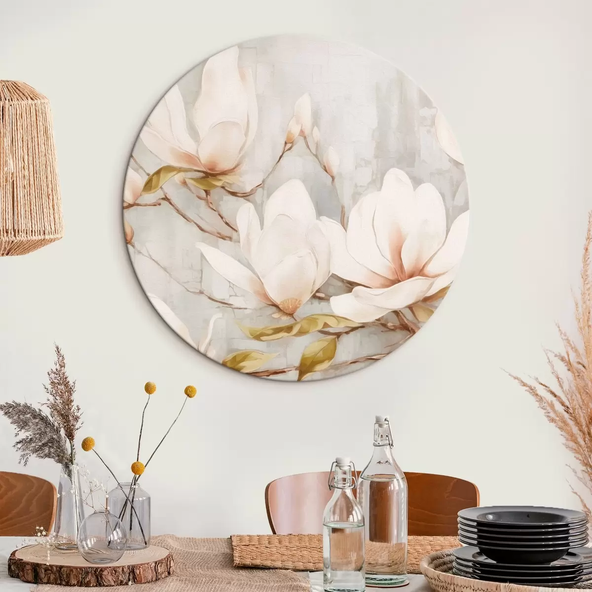 Picturi rotunde Creangă cu flori de magnolie tendință r42632
