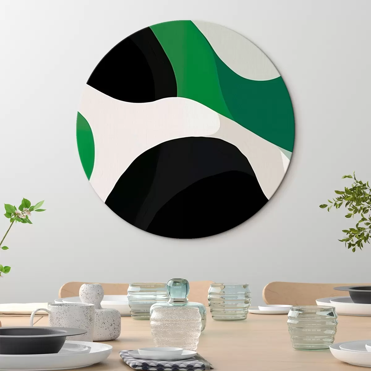 Picturi rotunde Model geometric abstract în tonuri de verde și negru Nr r42651