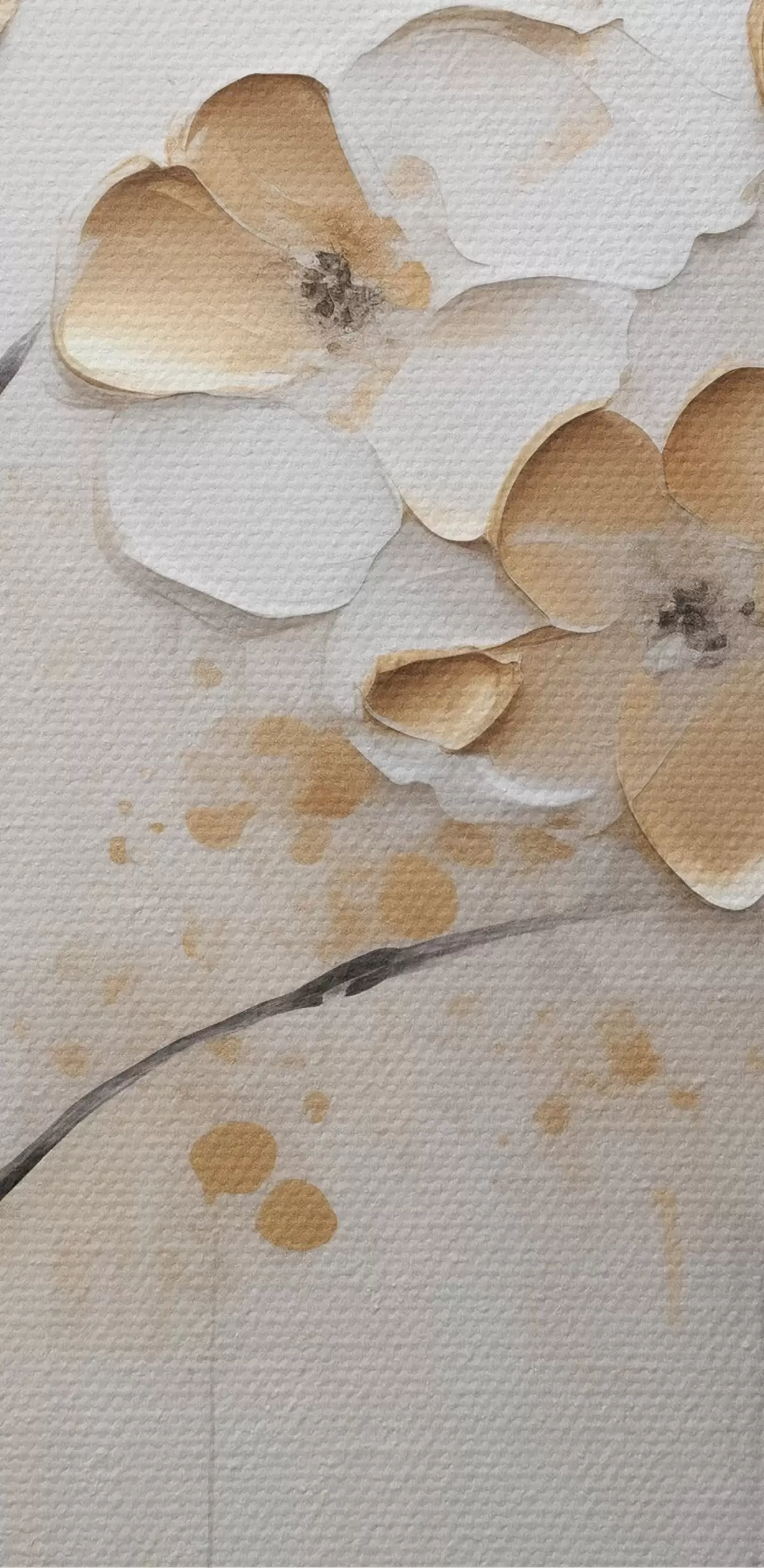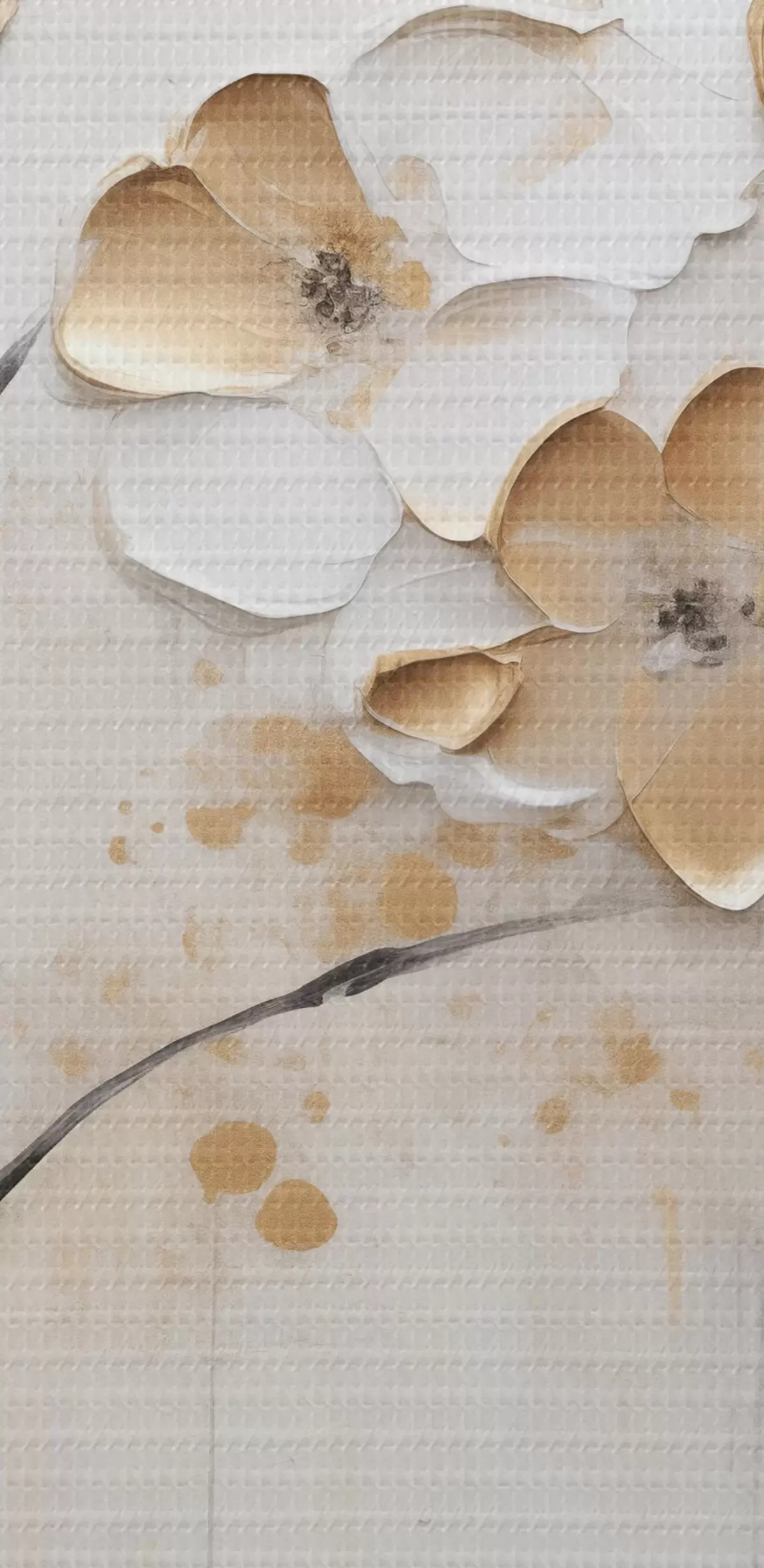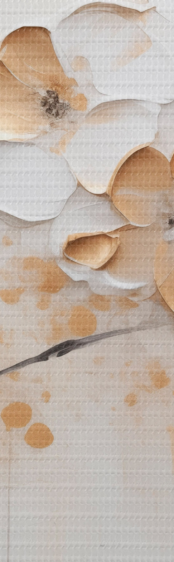 Picturi rotunde Flori cu petale texturate pe un fundal moale, mut, cu stropi abstracți de culoare și linii verticale Nr r42713