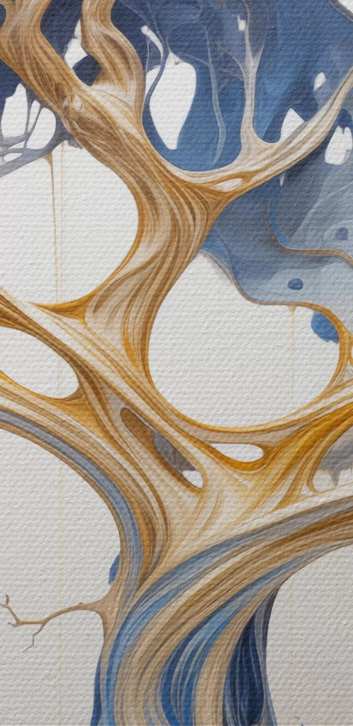 Picturi rotunde Un copac stilizat cu ramuri și frunze complicate, cu un amestec de nuanțe de albastru și galben Nr r42722