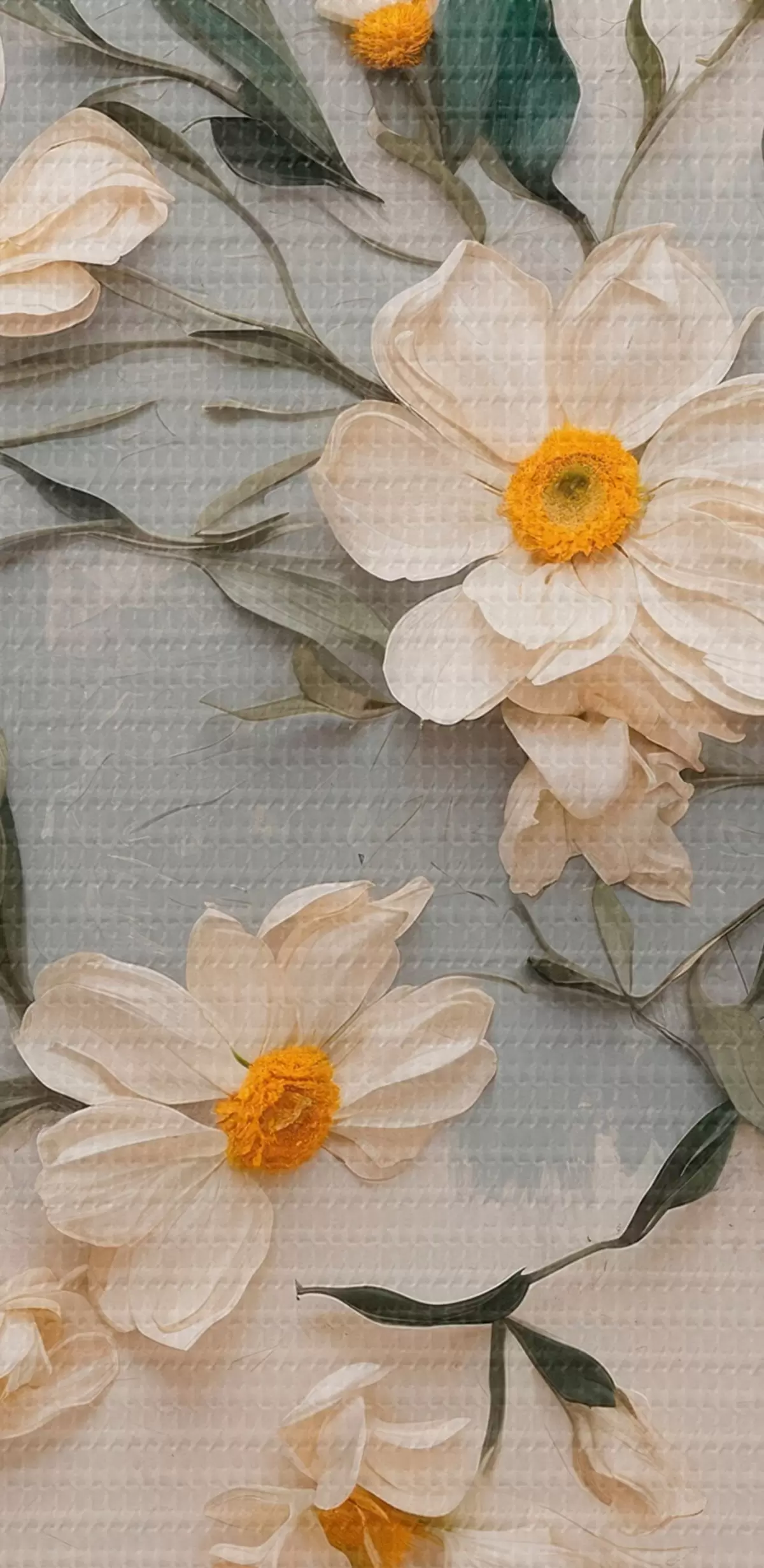 Picturi rotunde Flori albe și frunze pe fundal alb și gri Nr r42764