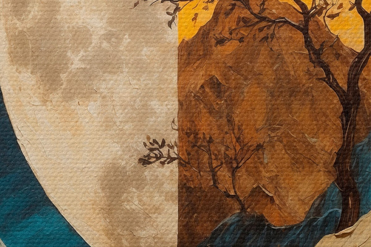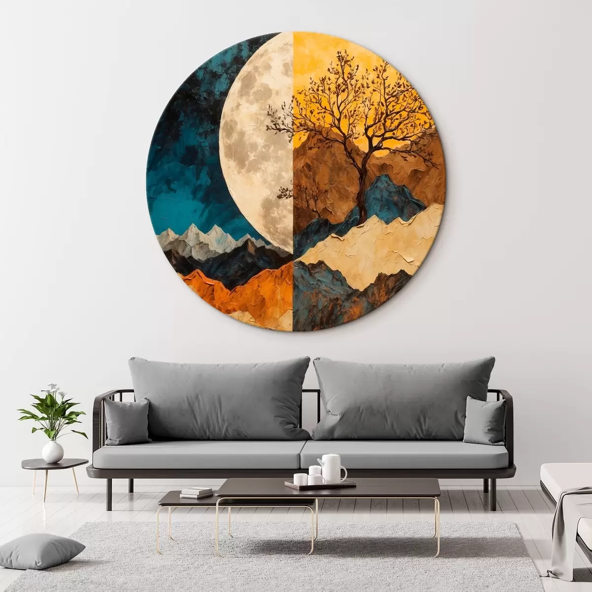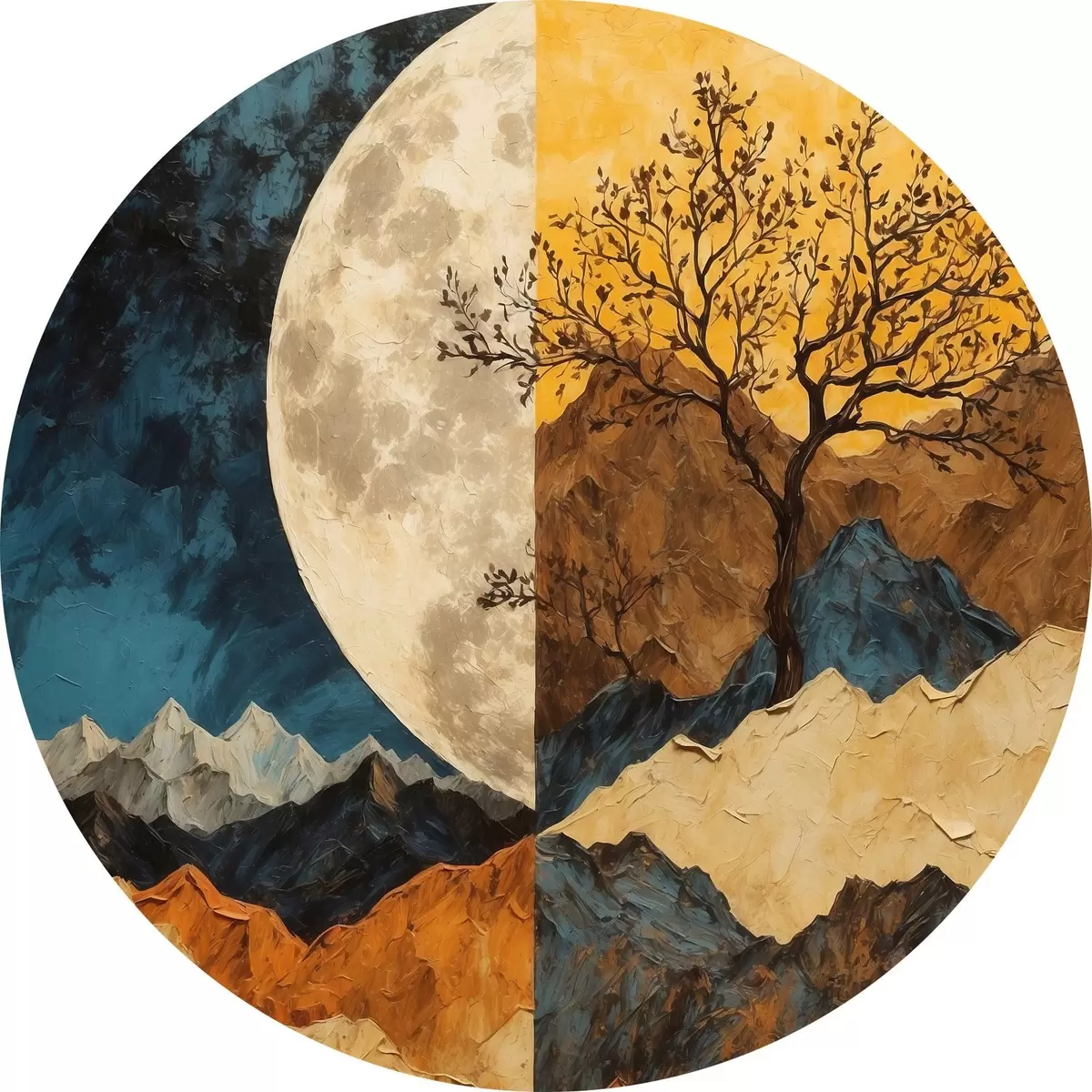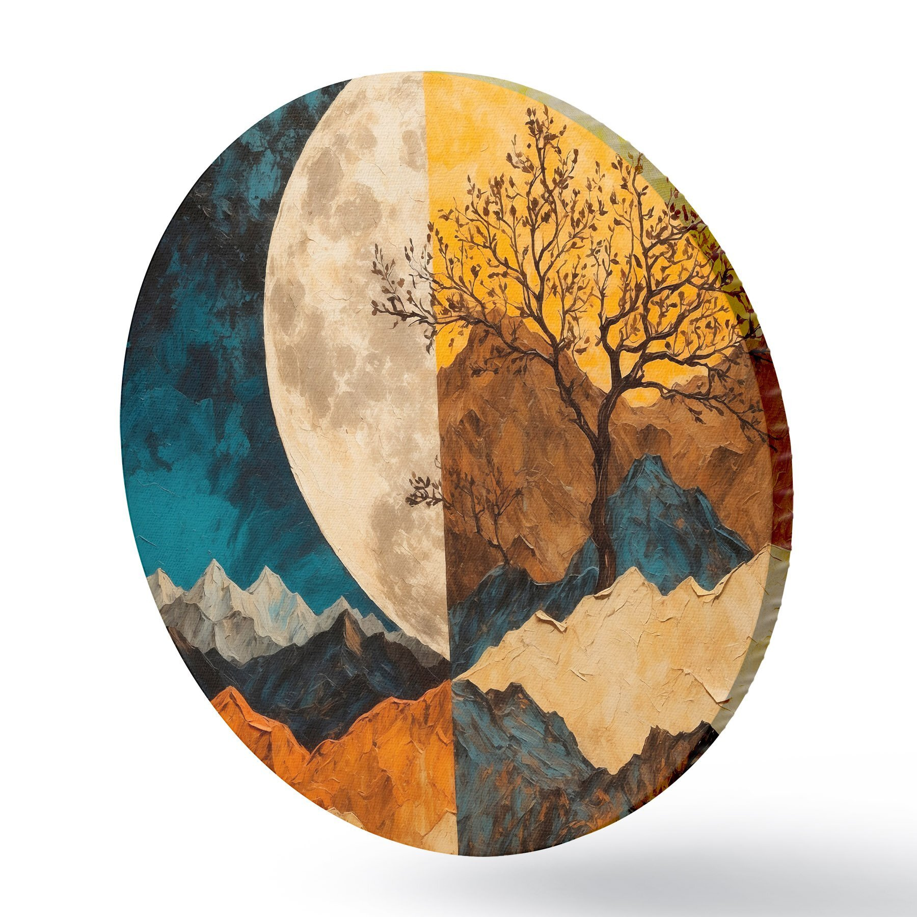 Picturi rotunde Munți multicolori pe fundalul lunii în stilul picturii acrilice Nr r42770