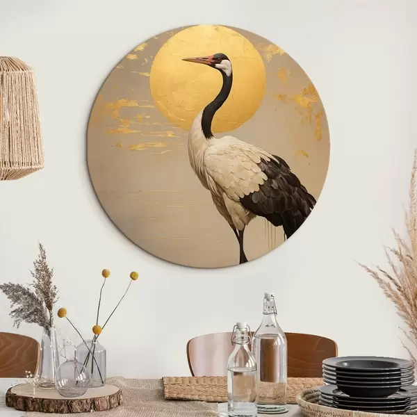 Picturi rotunde Crane împotriva soarelui în stilul picturii acrilice Nr r42773
