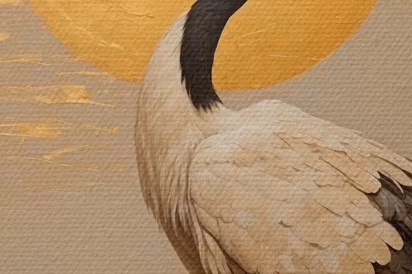 Picturi rotunde Crane împotriva soarelui în stilul picturii acrilice r42773