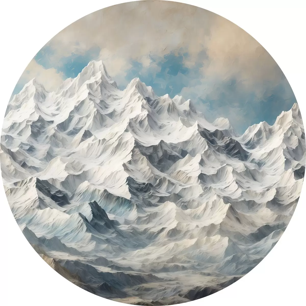Picturi rotunde Munți înzăpeziți în stilul picturii acrilice Nr r42775
