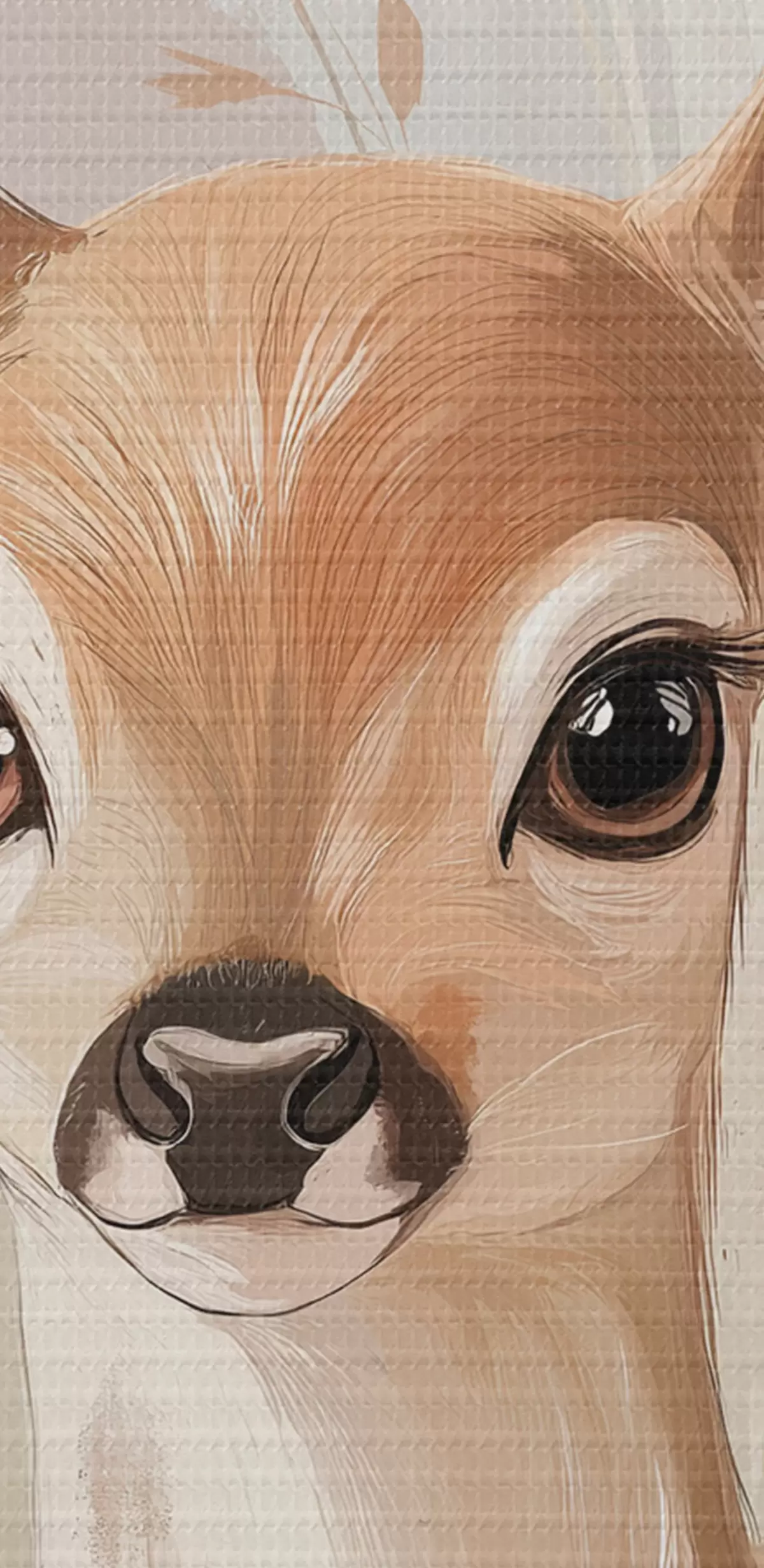 Picturi rotunde Cerb mic în pajiștea de vară, desen în stil acrilic, culori roz pastel și bej Nr r42781