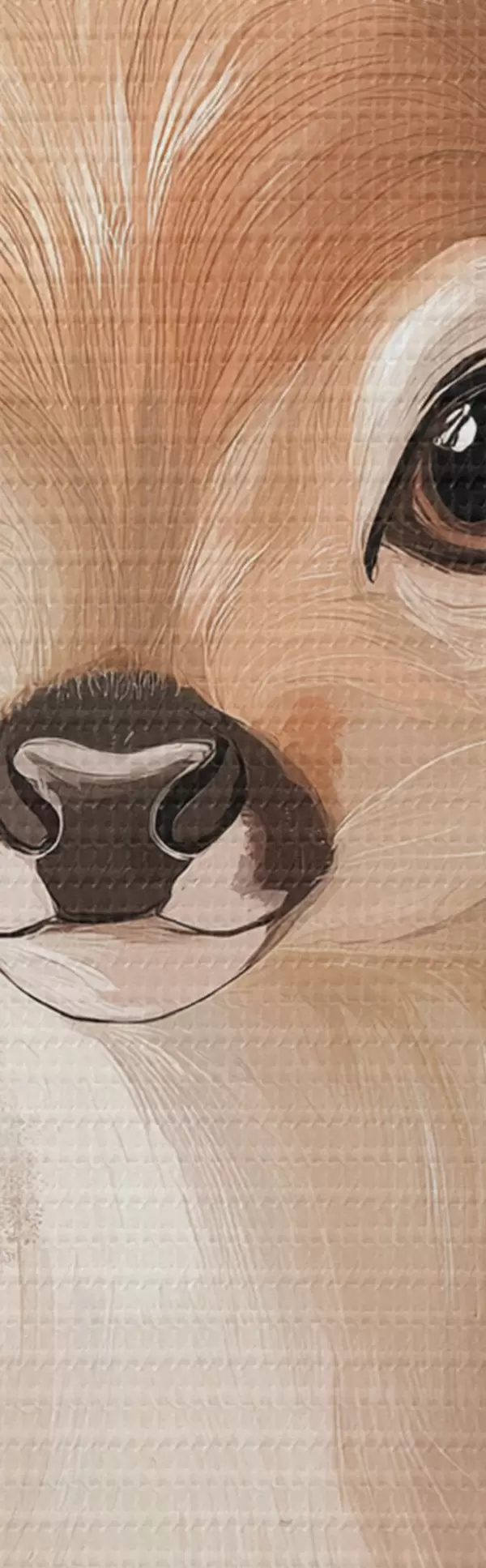Picturi rotunde Cerb mic în pajiștea de vară, desen în stil acrilic, culori roz pastel și bej r42781