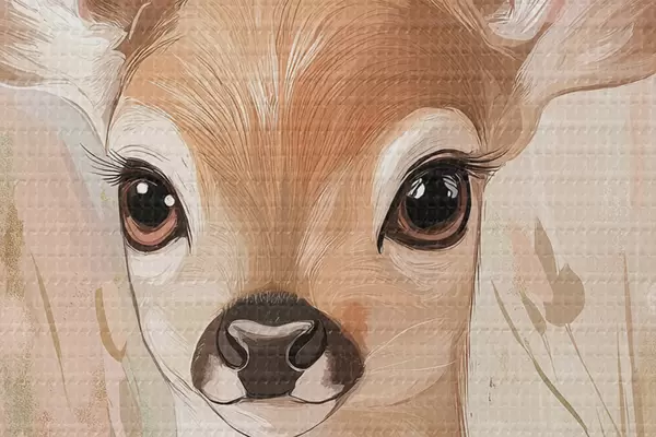 Picturi rotunde Cerb mic în pajiștea de vară, desen în stil acrilic, culori roz pastel și bej r42781