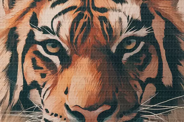 Picturi rotunde Tigru într-o pajiște înverzită, coroană, pictură acrilică Nr r42783