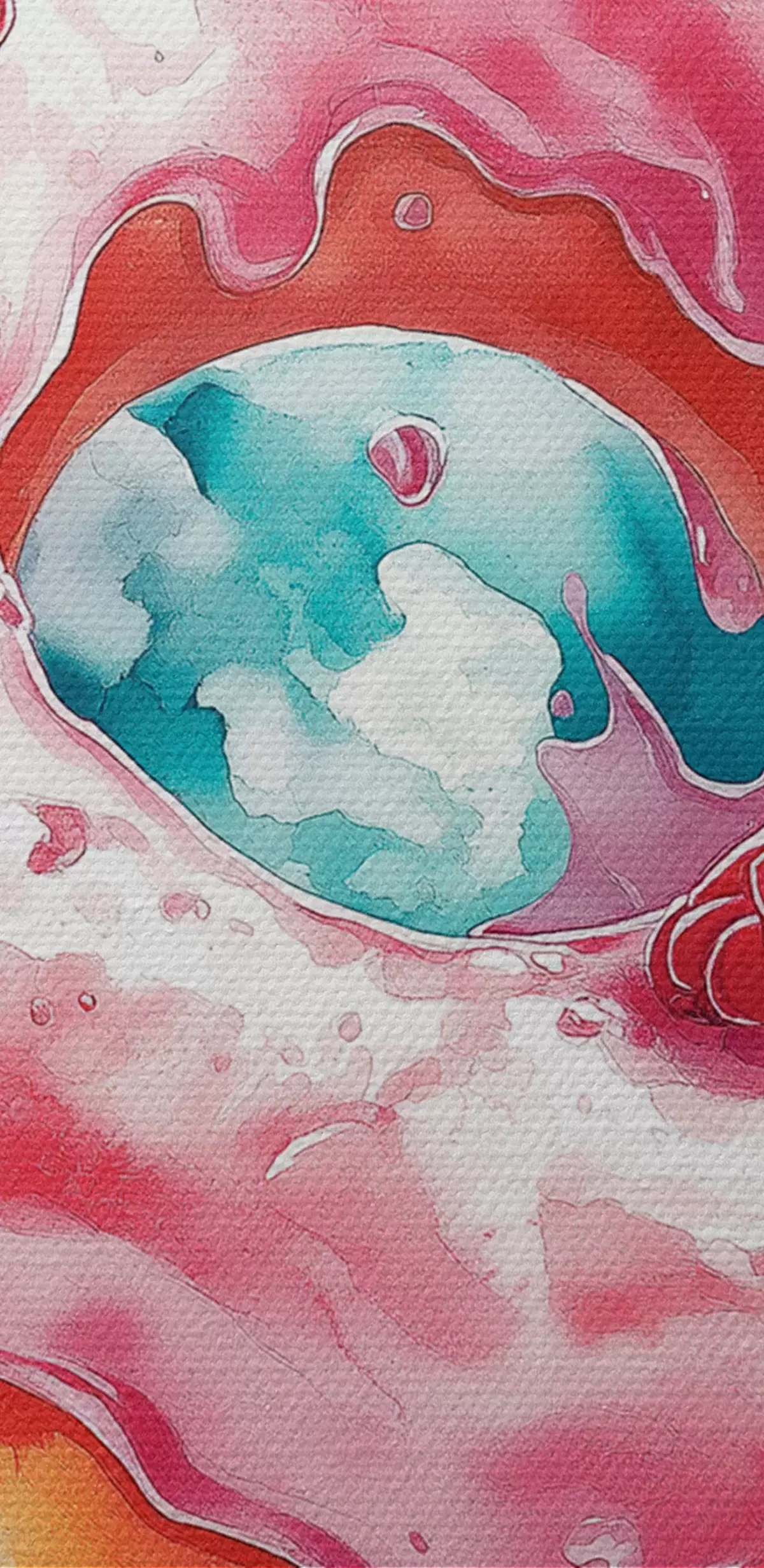 Picturi rotunde Gogoașă acuarelă cu zmeură, culori roz și albastru r42787