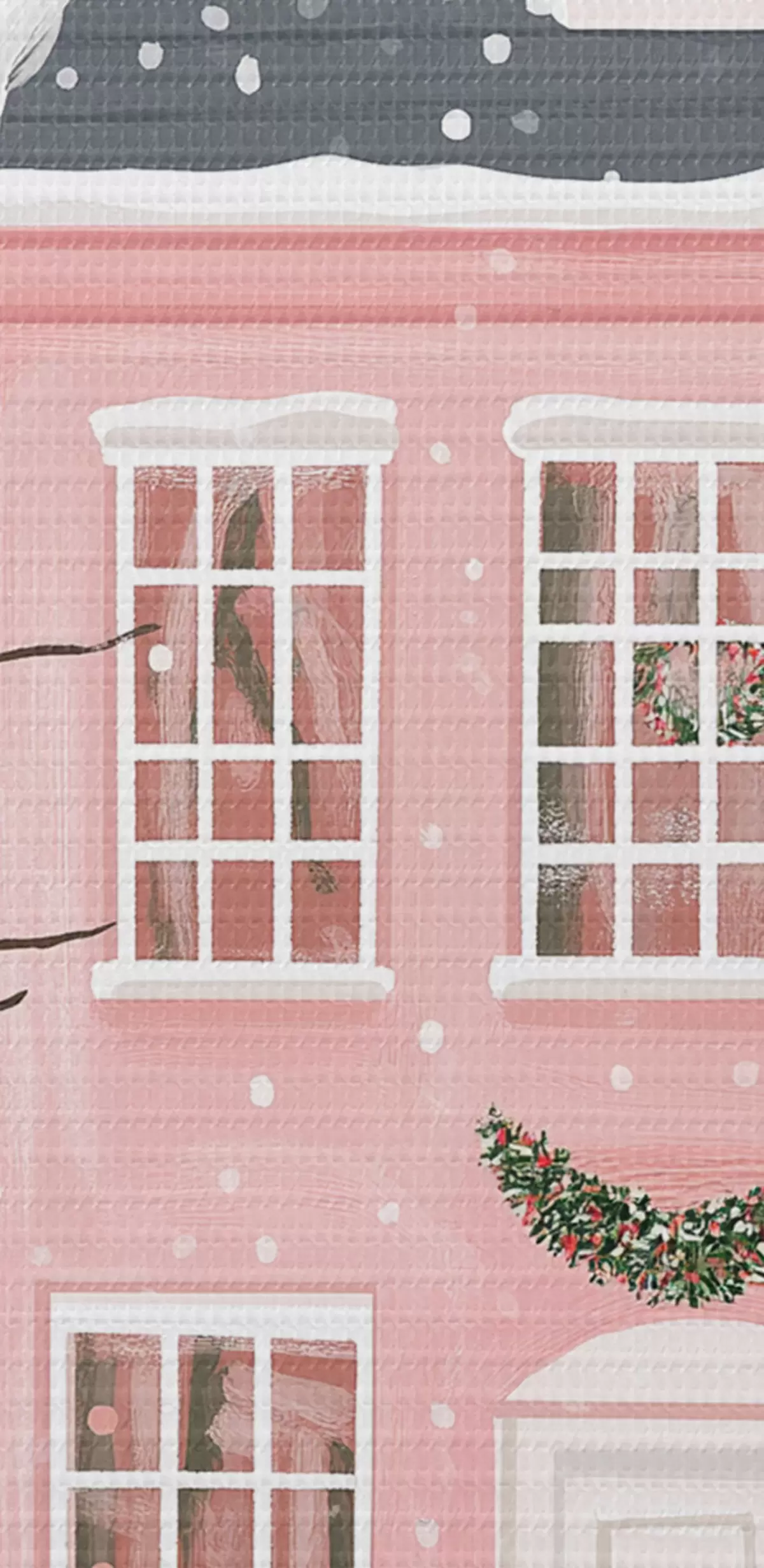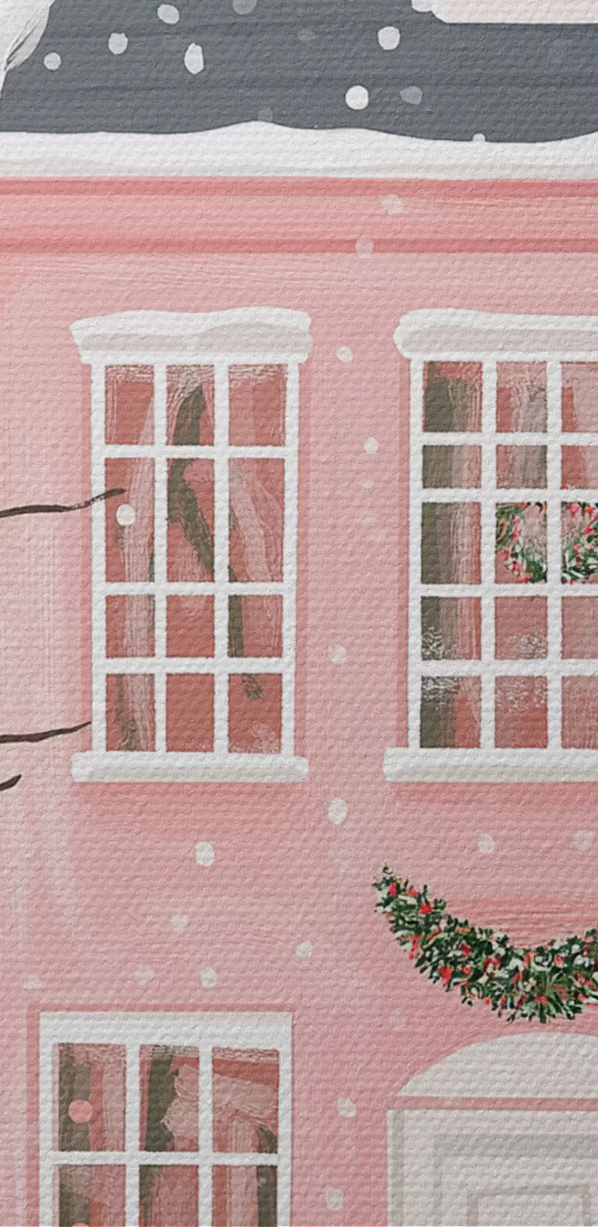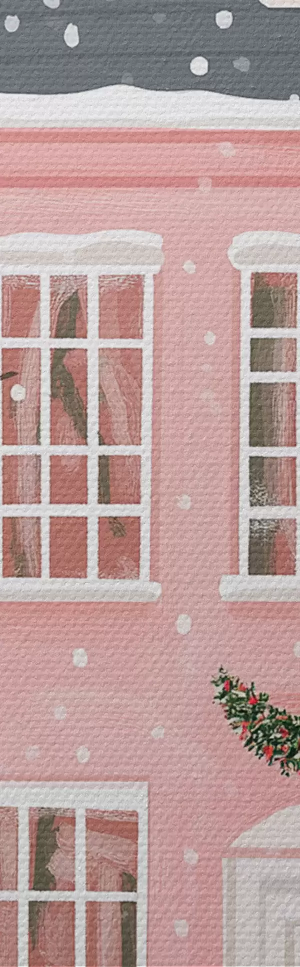 Picturi rotunde Case roz drăguț, copaci de pin, peisaje de iarnă r42791