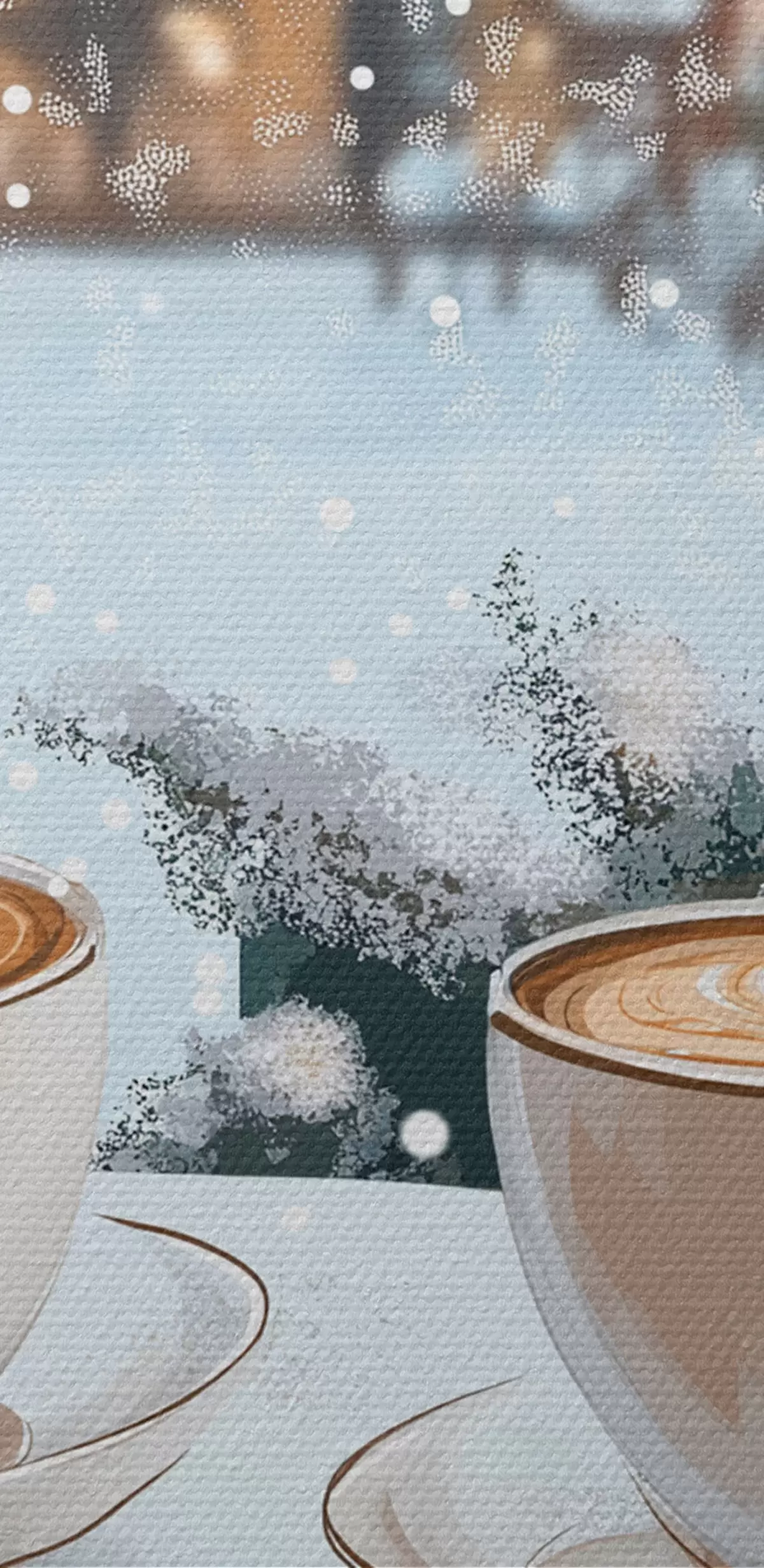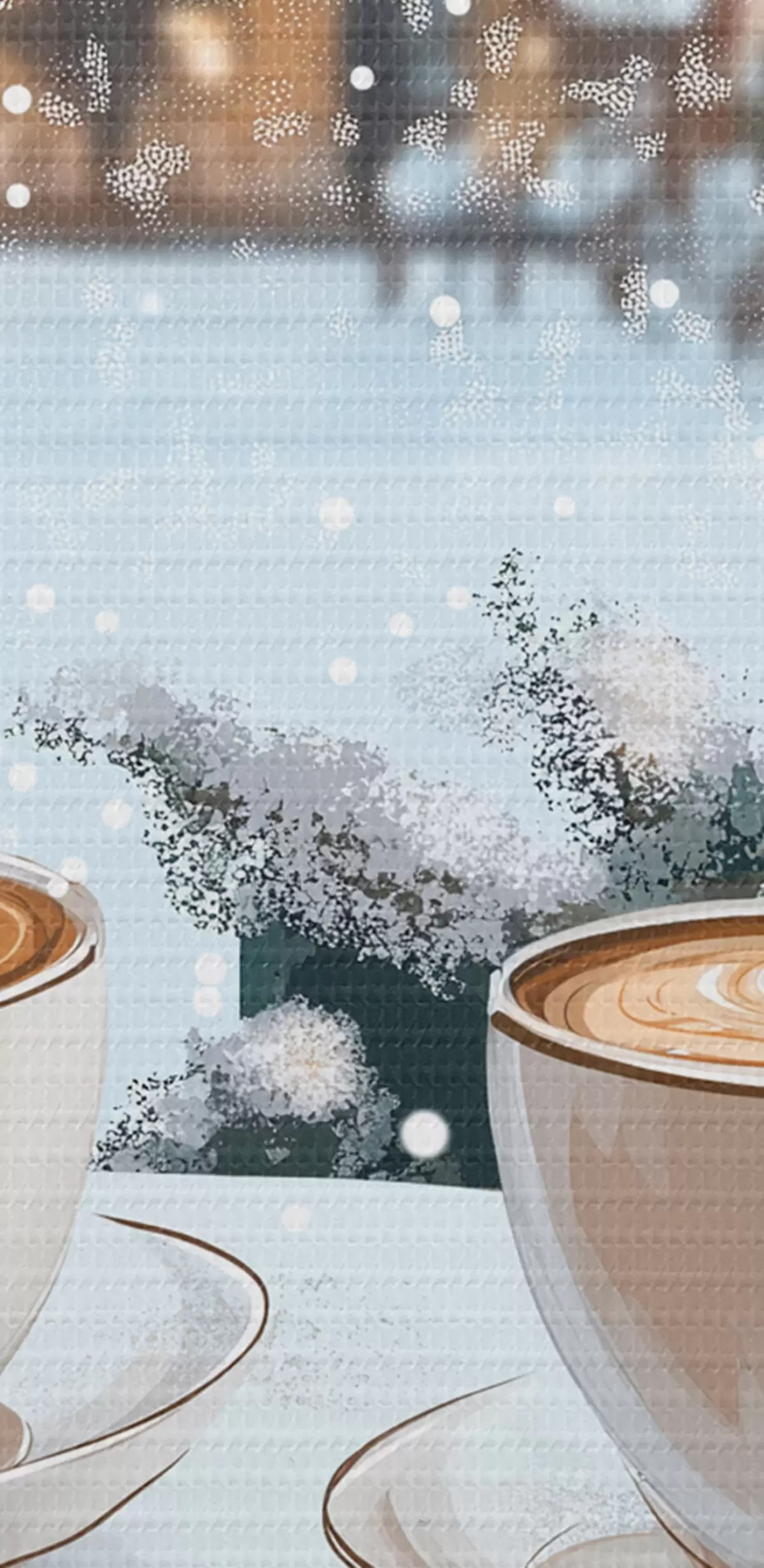 Picturi rotunde Cești de cafea în cafeneaua confortabilă, estetica de iarnă, stilul boho r42797