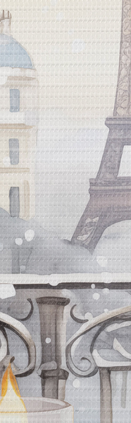 Picturi rotunde Cafea frumoasă în Paris, cești de ceai, vedere romantică, iarnă, stil acuarelă r42799