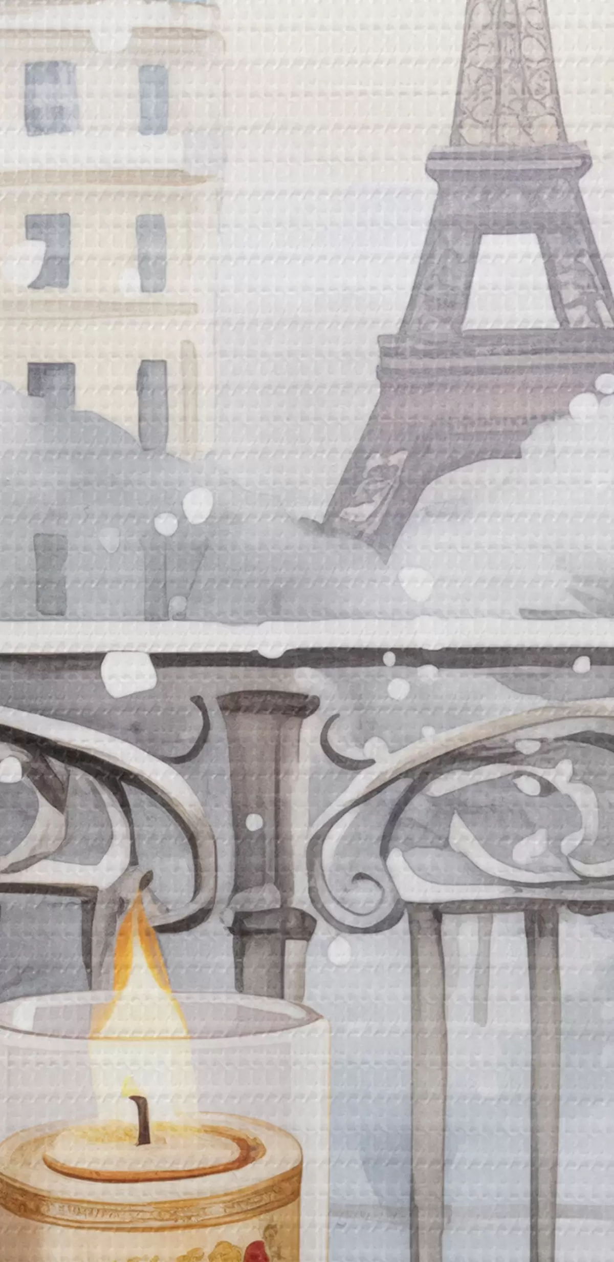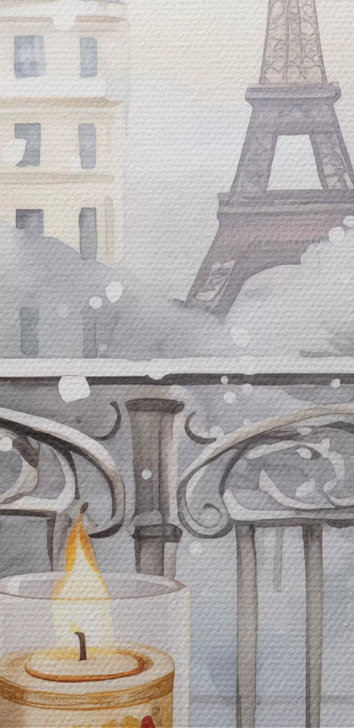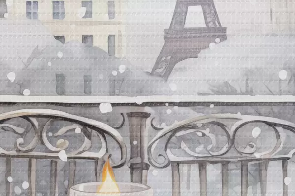 Picturi rotunde Cafea frumoasă în Paris, cești de ceai, vedere romantică, iarnă, stil acuarelă r42799