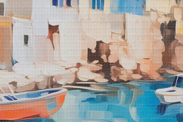 Picturi rotunde Case lângă mare imitație de pictură Nr r42830