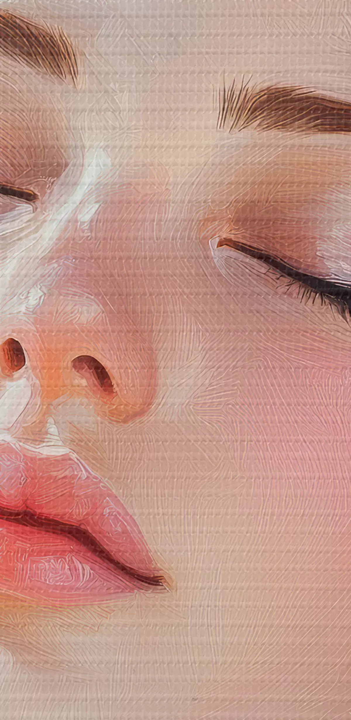 Țesătura fină a firelor de pe această pânză seamănă cu suprafața pânzelor artiștilor profesioniști.