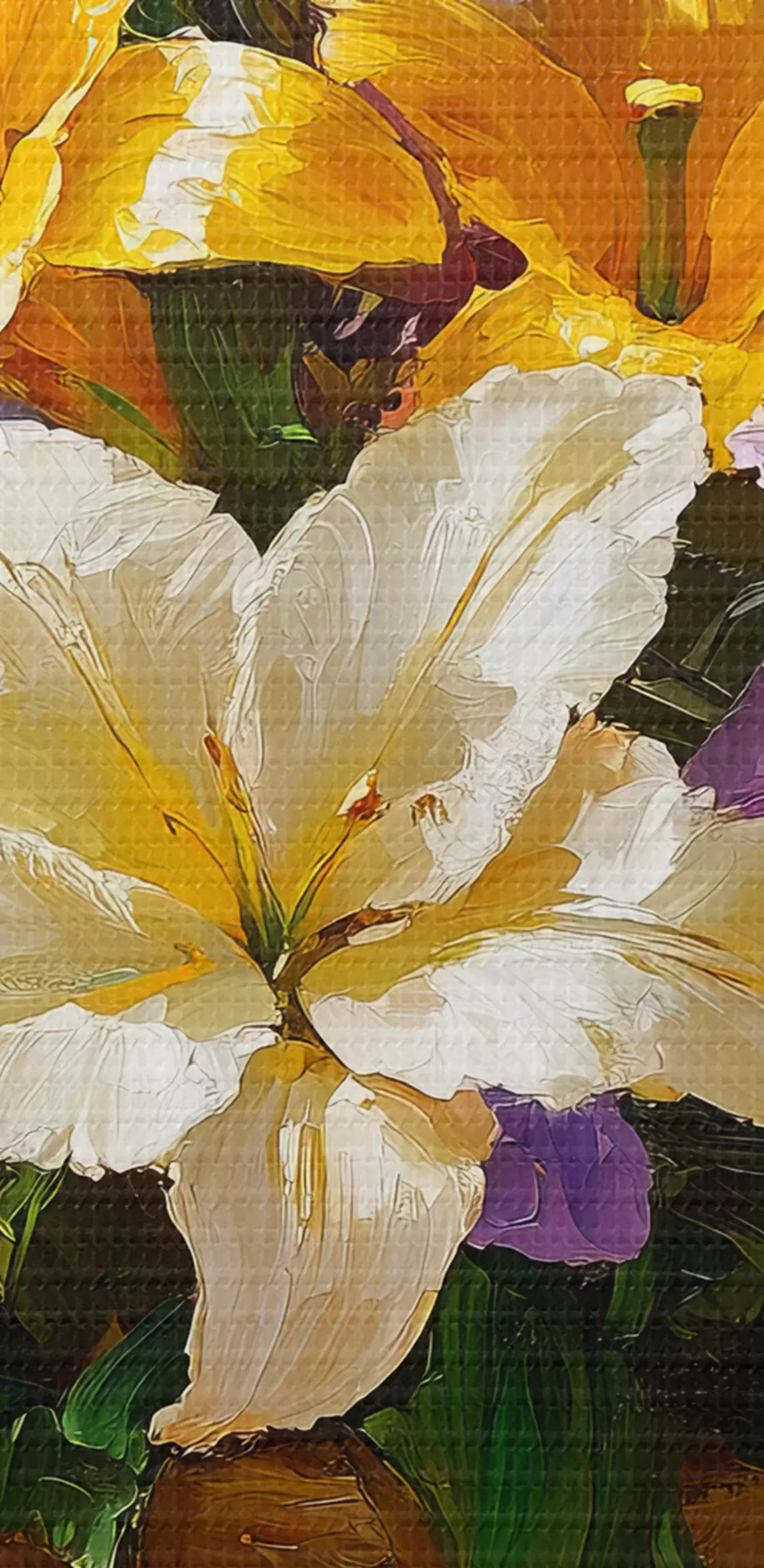 Trei tipuri de materiale sunt disponibile pentru comandă: Economic Canvas - un material dens și durabil pentru imprimarea digitală, identic cu pânza de pictor, suprafață impermeabilă, reproducere realistă a detaliilor, material cu granulație medie. Premium Canvas - textura seamănă cu cea a pânzei unui pictor (fire mici împletite). Reproducere moale, detaliată a imaginii pe o suprafață mată. Eco-Premium - țesătură 100% bumbac de înaltă calitate. Datorită fibrelor naturale de bumbac, materialul este durabil și rezistent la uzură. Reproducere excelentă a culorilor și a detaliilor.