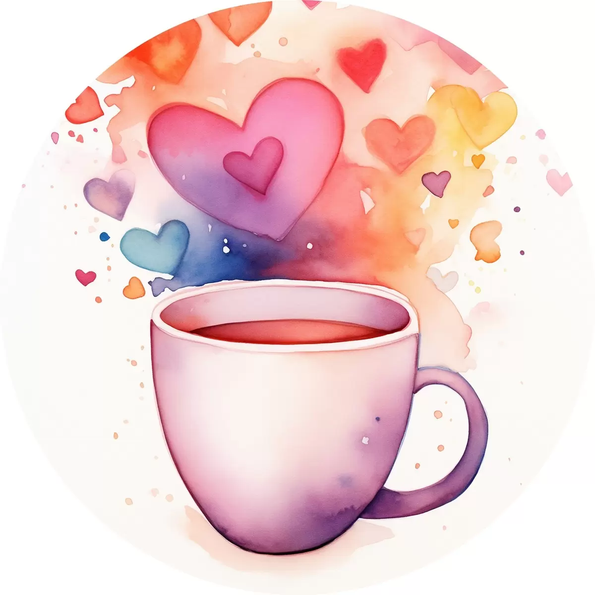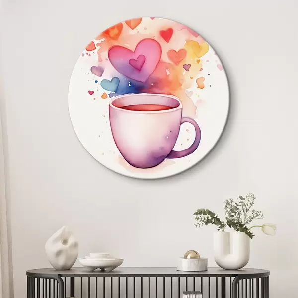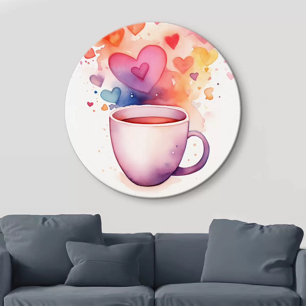 Picturi rotunde O ceașcă pe un fundal de acuarelă inimi Nr r42869