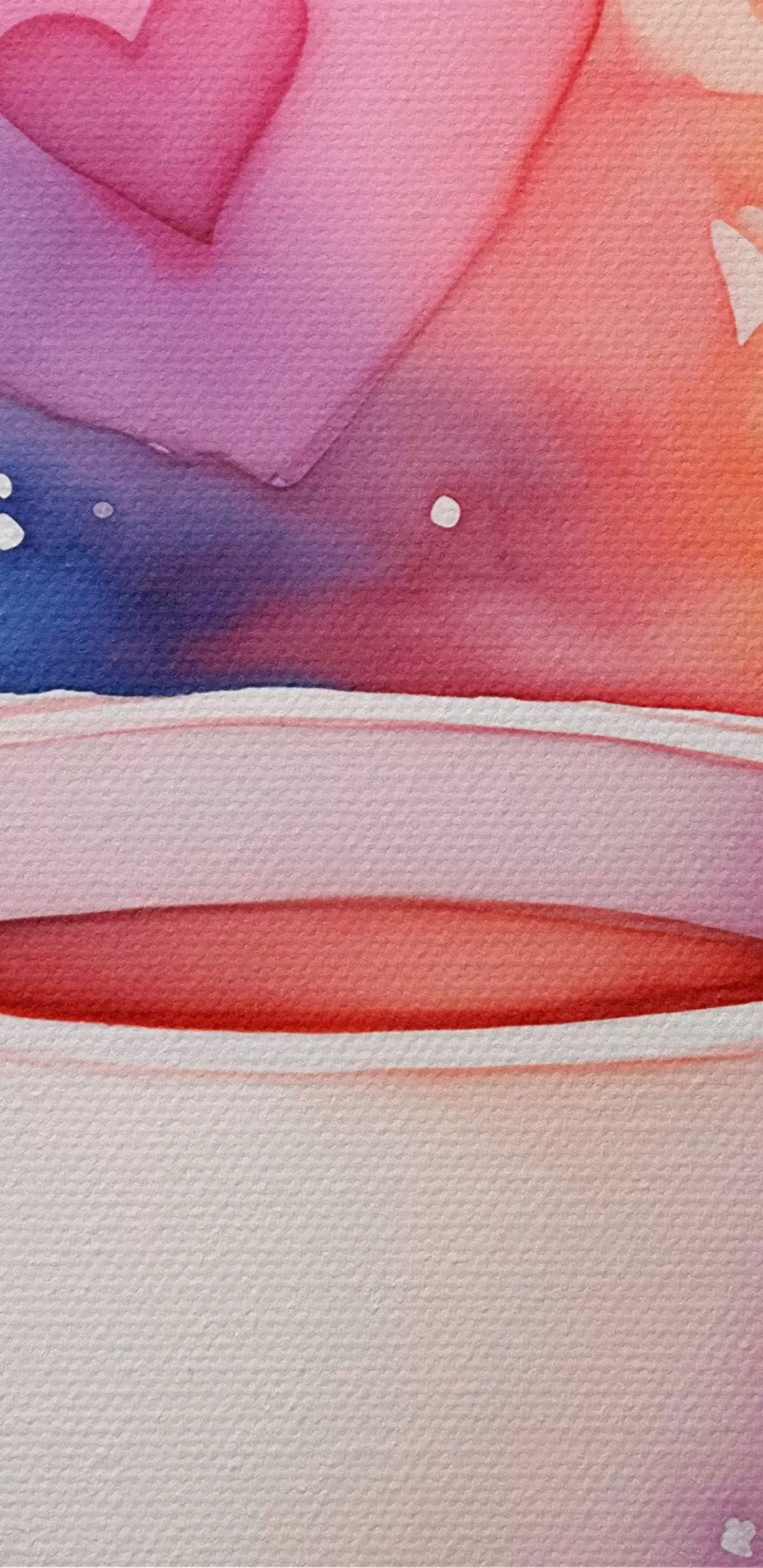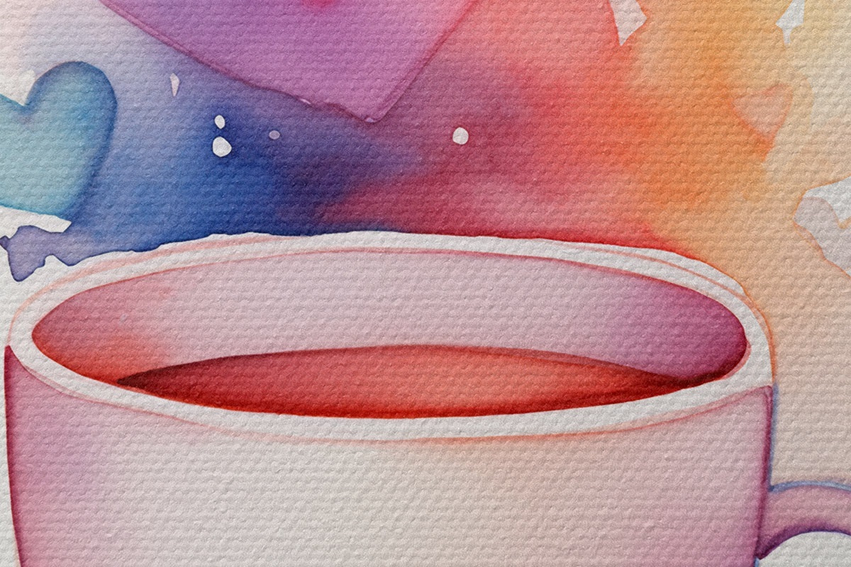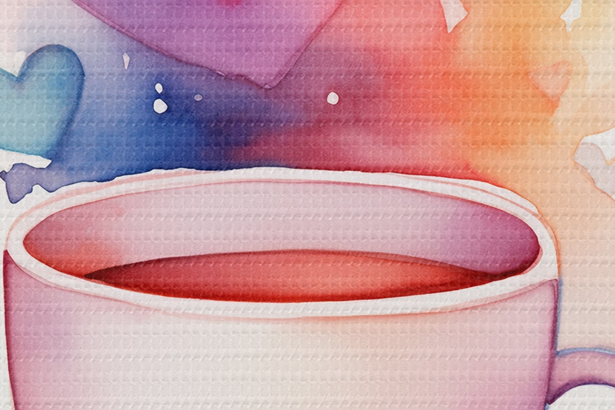 Picturi rotunde O ceașcă pe un fundal de acuarelă inimi r42869