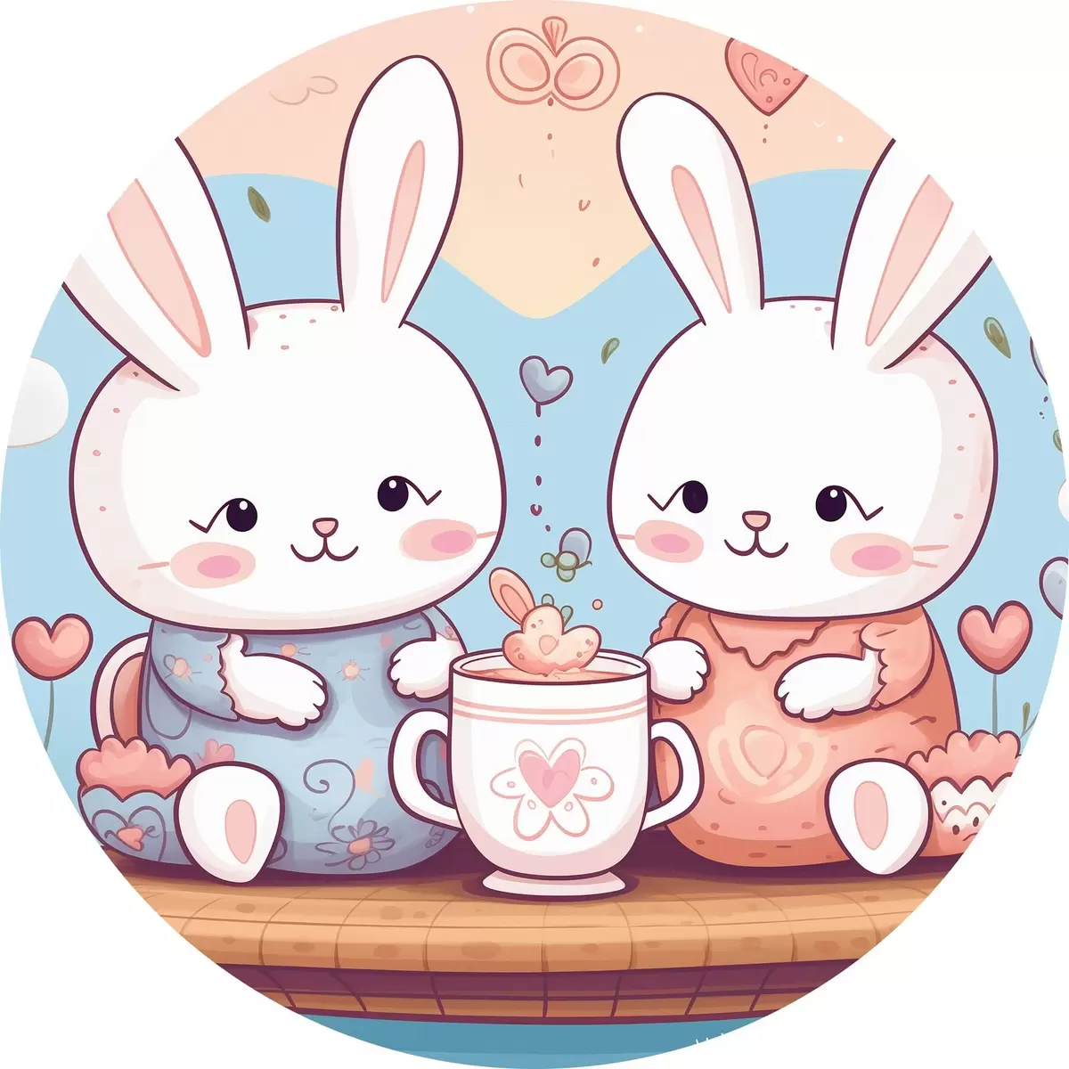Picturi rotunde Iepurași drăguți, petrecere de ceai Nr r42873