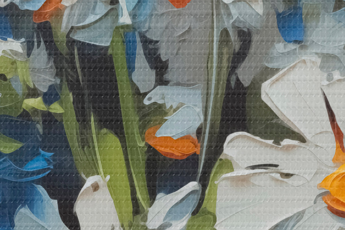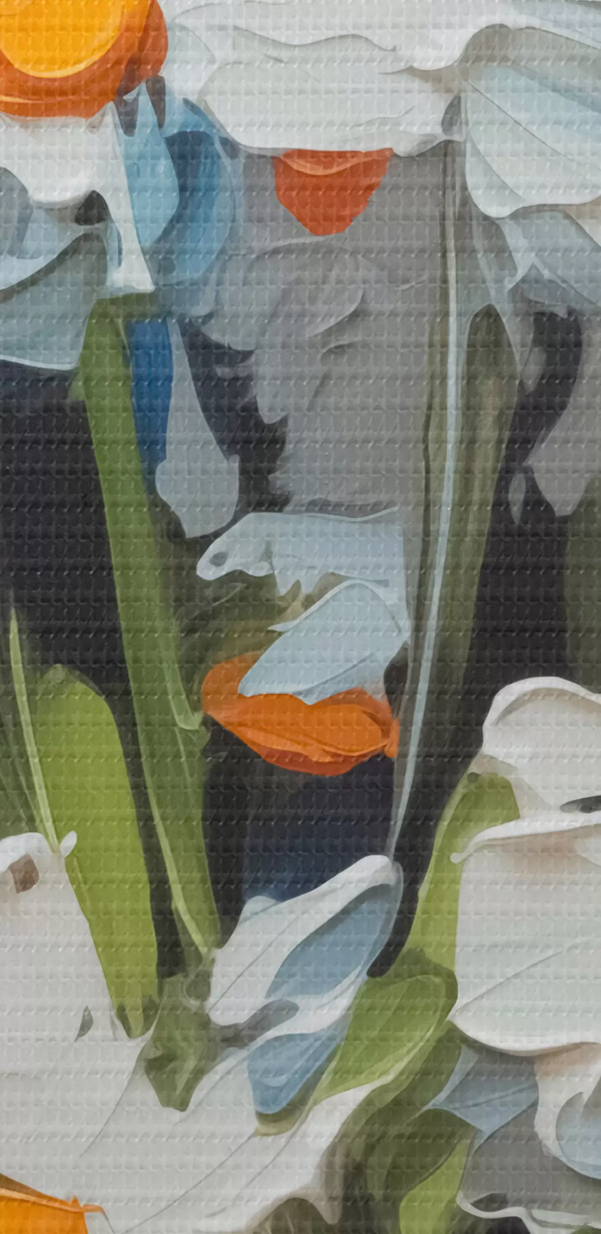Trei tipuri de materiale sunt disponibile pentru comandă: Economic Canvas - un material dens și durabil pentru imprimarea digitală, identic cu pânza de pictor, suprafață impermeabilă, reproducere realistă a detaliilor, material cu granulație medie. Premium Canvas - textura seamănă cu cea a pânzei unui pictor (fire mici împletite). Reproducere moale, detaliată a imaginii pe o suprafață mată. Eco-Premium - țesătură 100% bumbac de înaltă calitate. Datorită fibrelor naturale de bumbac, materialul este durabil și rezistent la uzură. Reproducere excelentă a culorilor și a detaliilor.