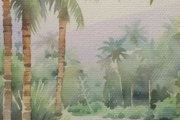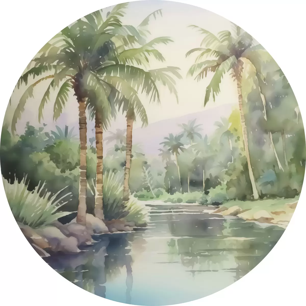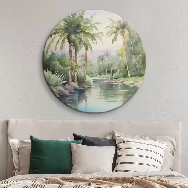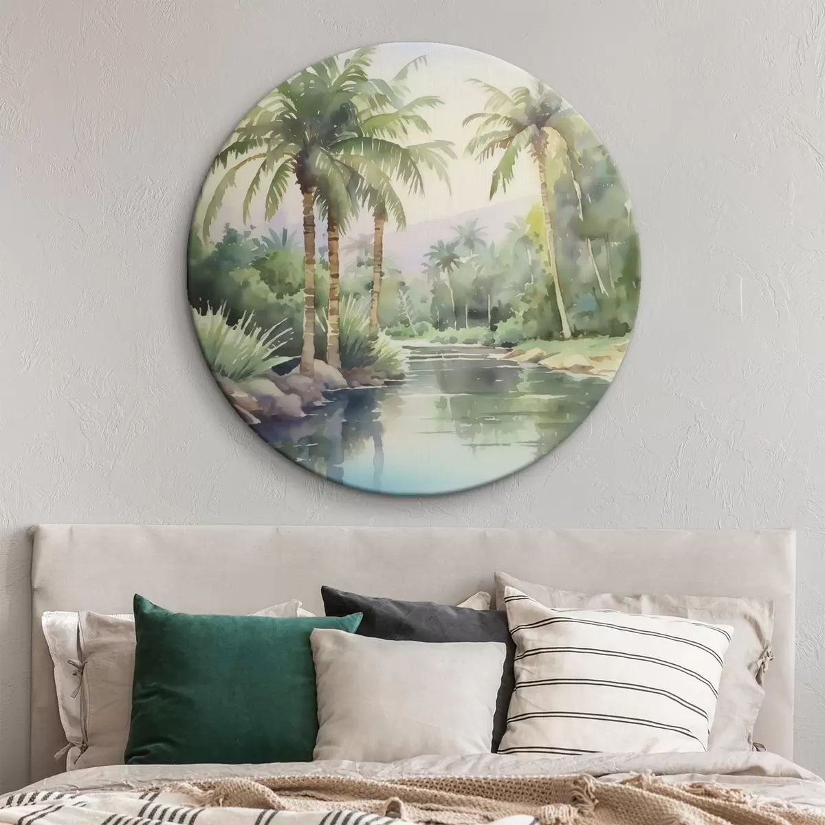 Picturi rotunde Peisaj tropical imitație acuarelă Nr r42912