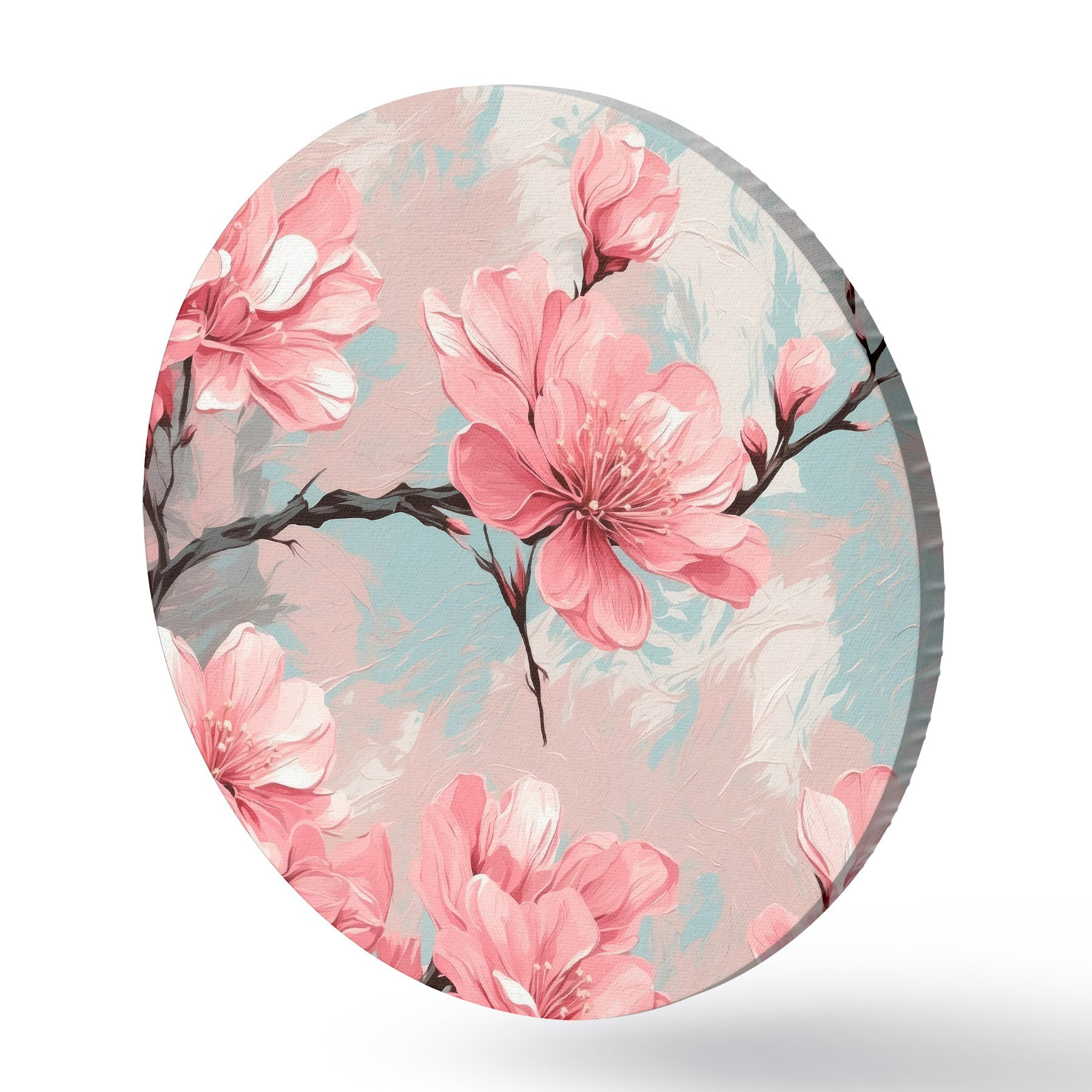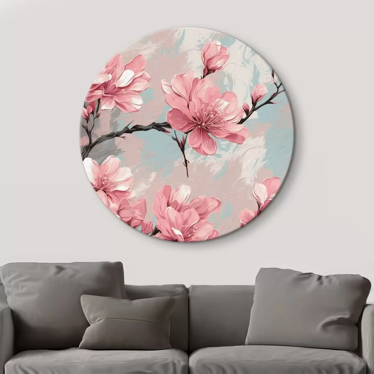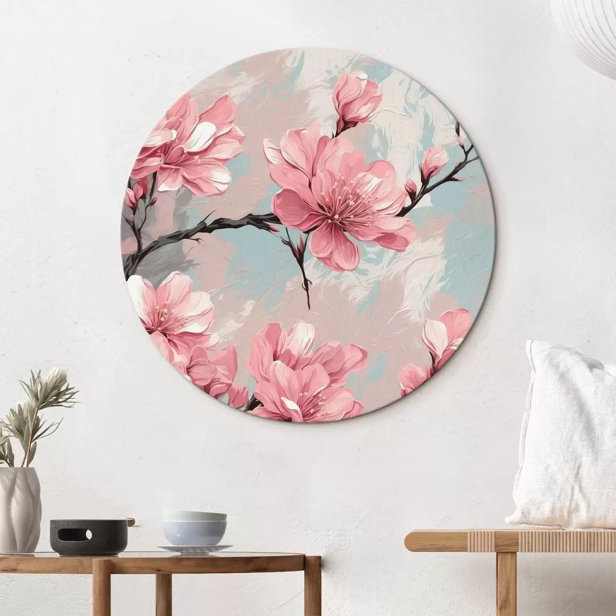 Picturi rotunde Flori roz și tulpini în stilul picturii acrilice Nr r42918