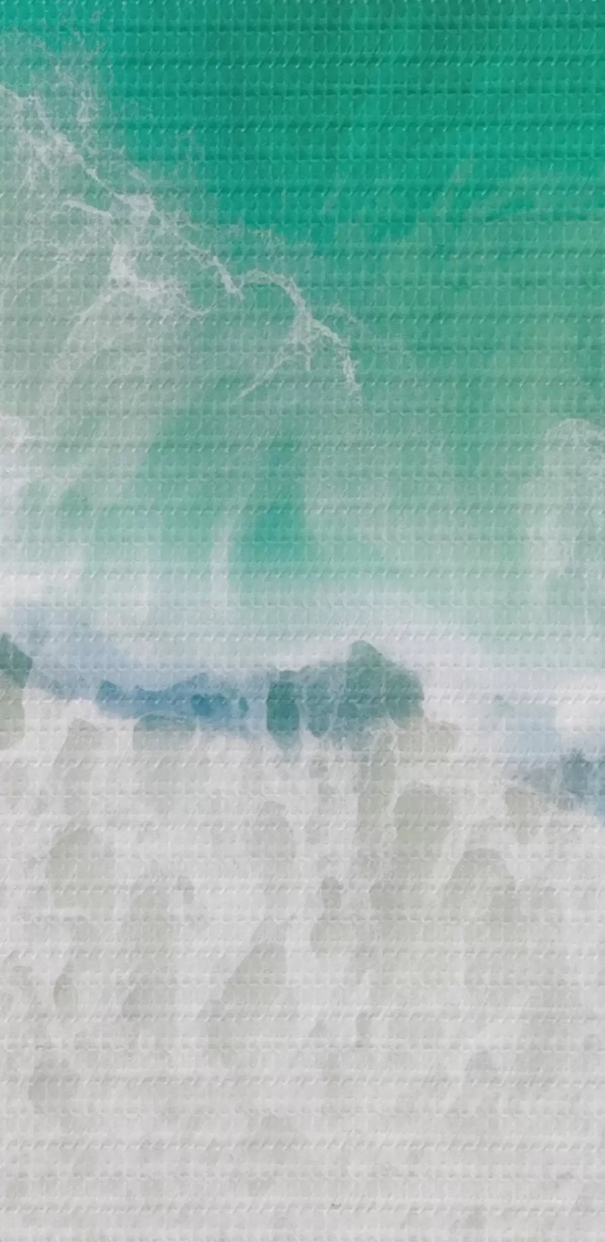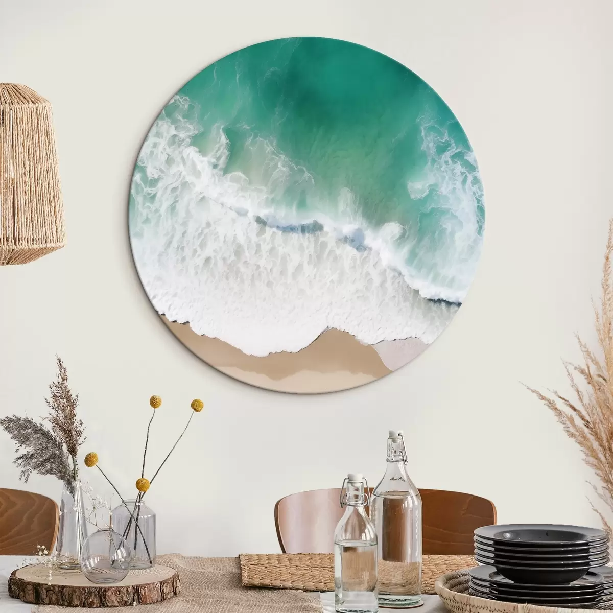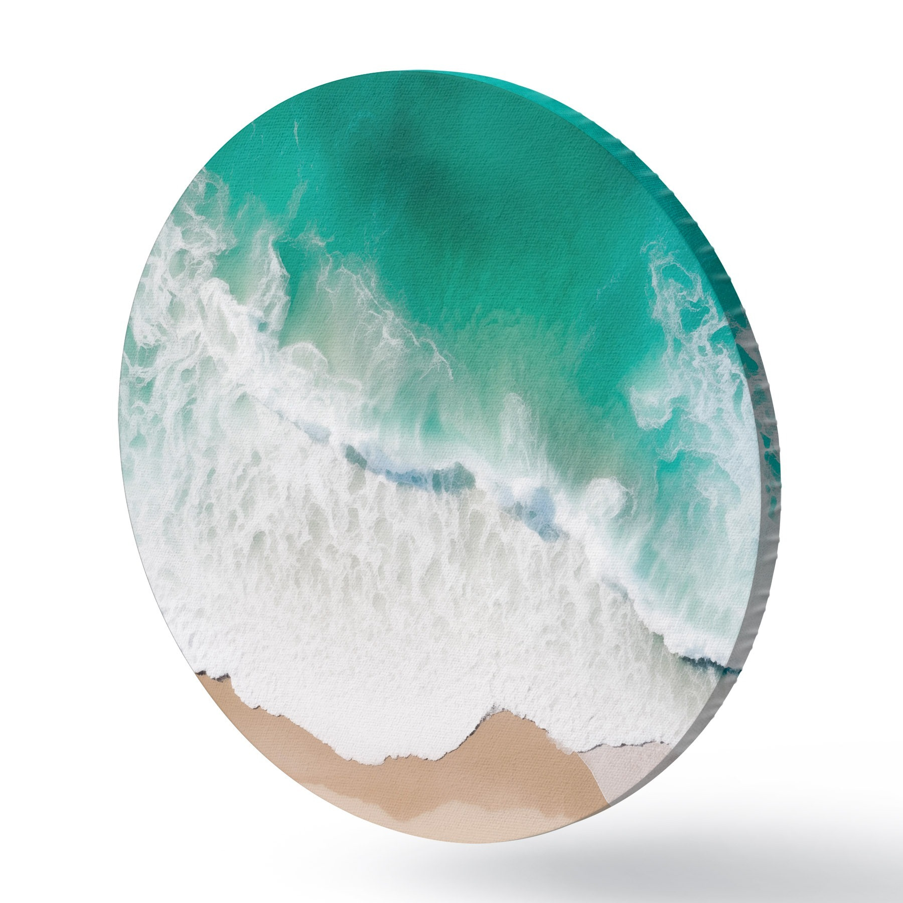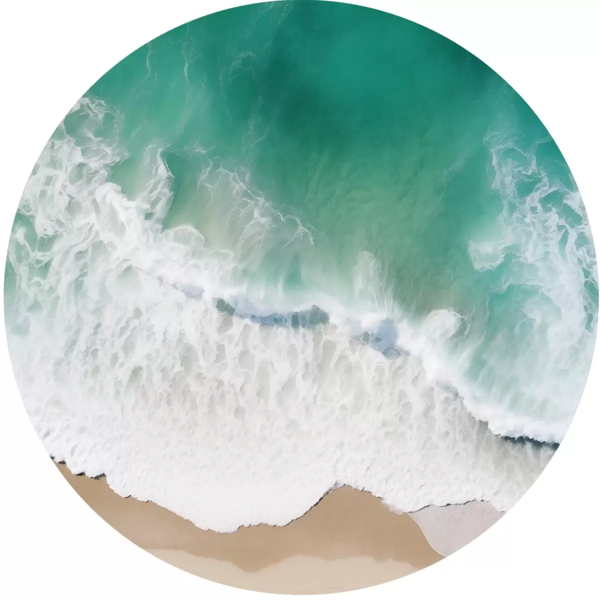 Picturi rotunde Vedere aeriană a unui mal de mare cu valuri turcoaz care se rostogolesc ușor pe plaja de nisip Nr r42930