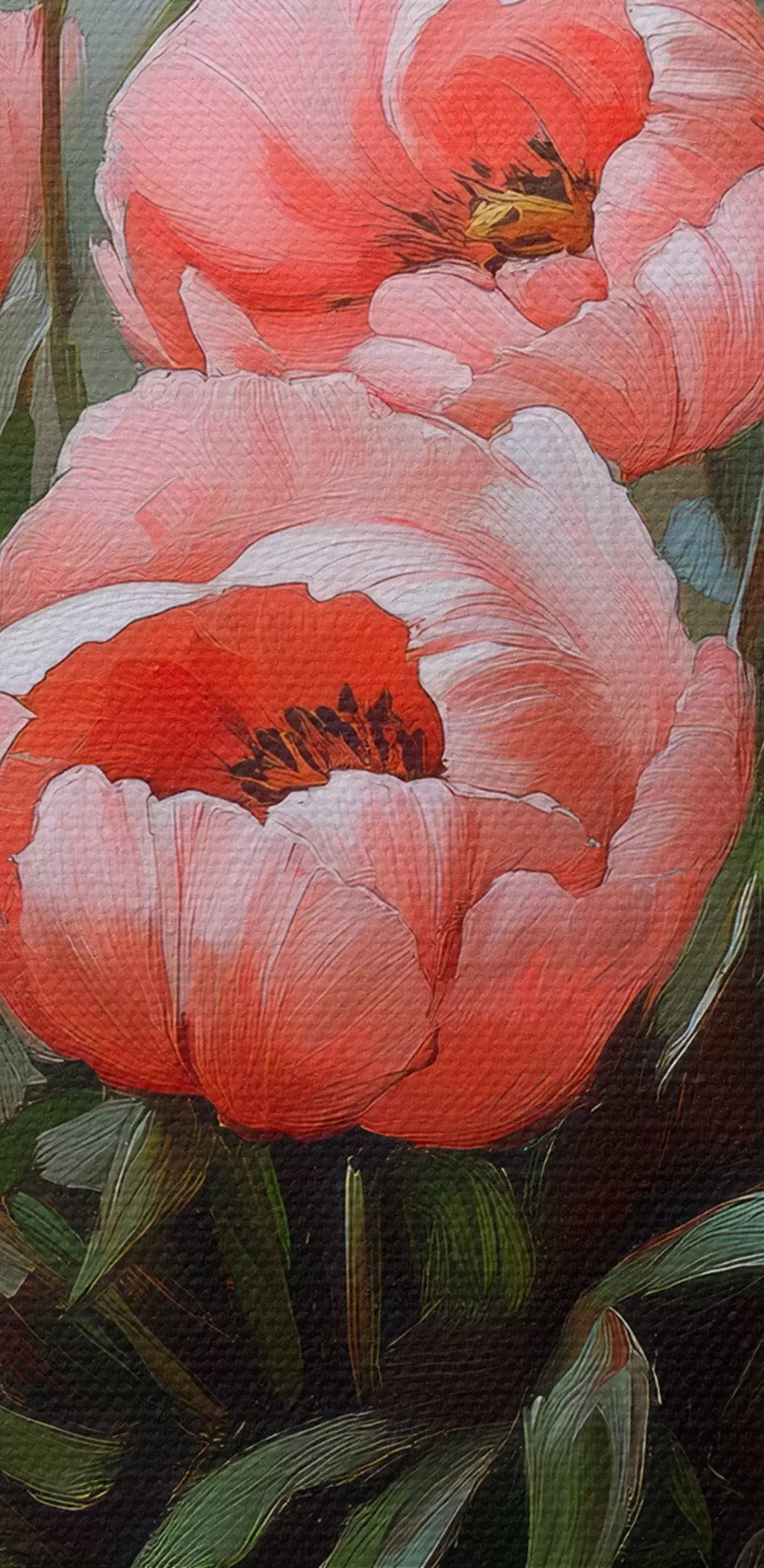 Trei tipuri de materiale sunt disponibile pentru comandă: Economic Canvas - un material dens și durabil pentru imprimarea digitală, identic cu pânza de pictor, suprafață impermeabilă, reproducere realistă a detaliilor, material cu granulație medie. Premium Canvas - textura seamănă cu cea a pânzei unui pictor (fire mici împletite). Reproducere moale, detaliată a imaginii pe o suprafață mată. Eco-Premium - țesătură 100% bumbac de înaltă calitate. Datorită fibrelor naturale de bumbac, materialul este durabil și rezistent la uzură. Reproducere excelentă a culorilor și a detaliilor.