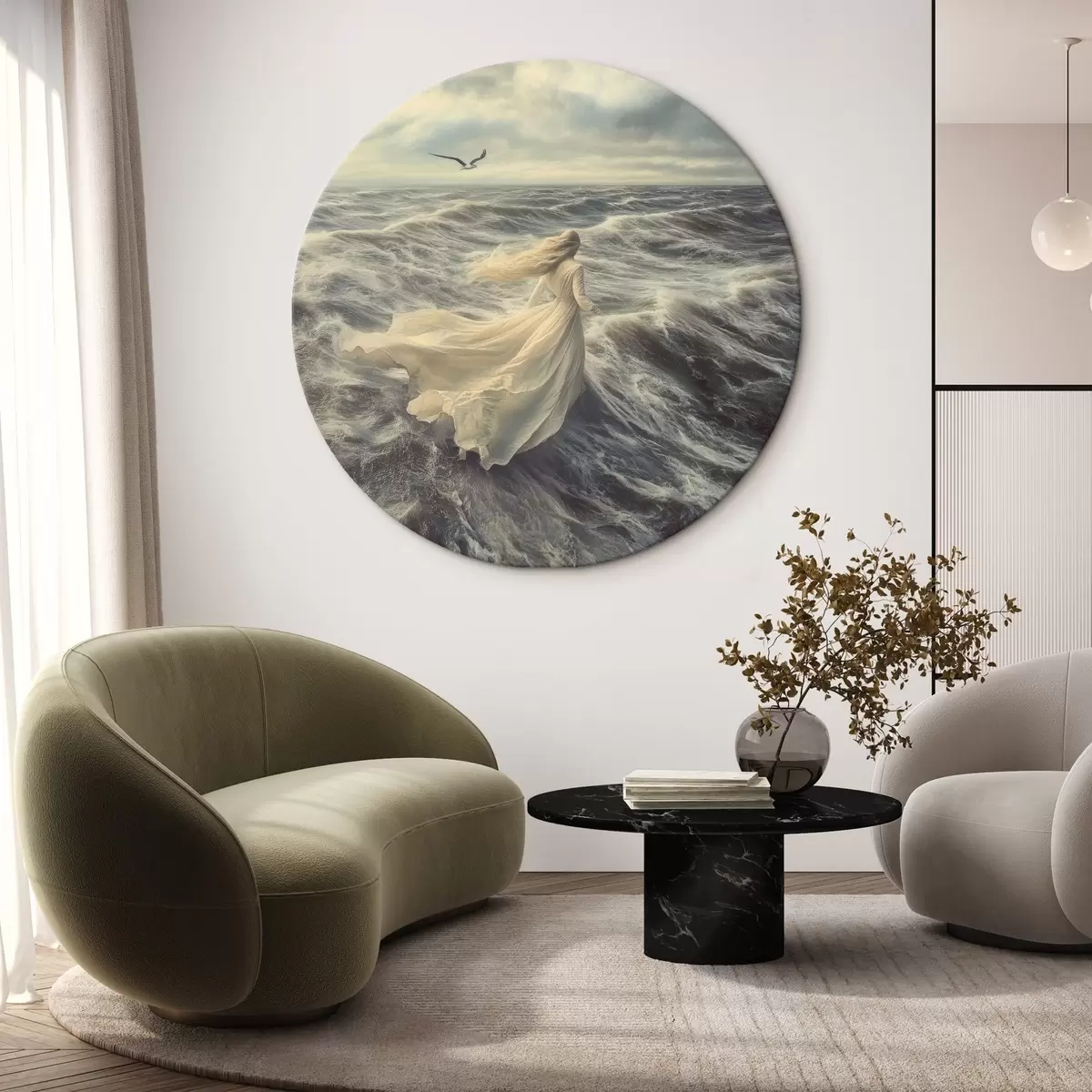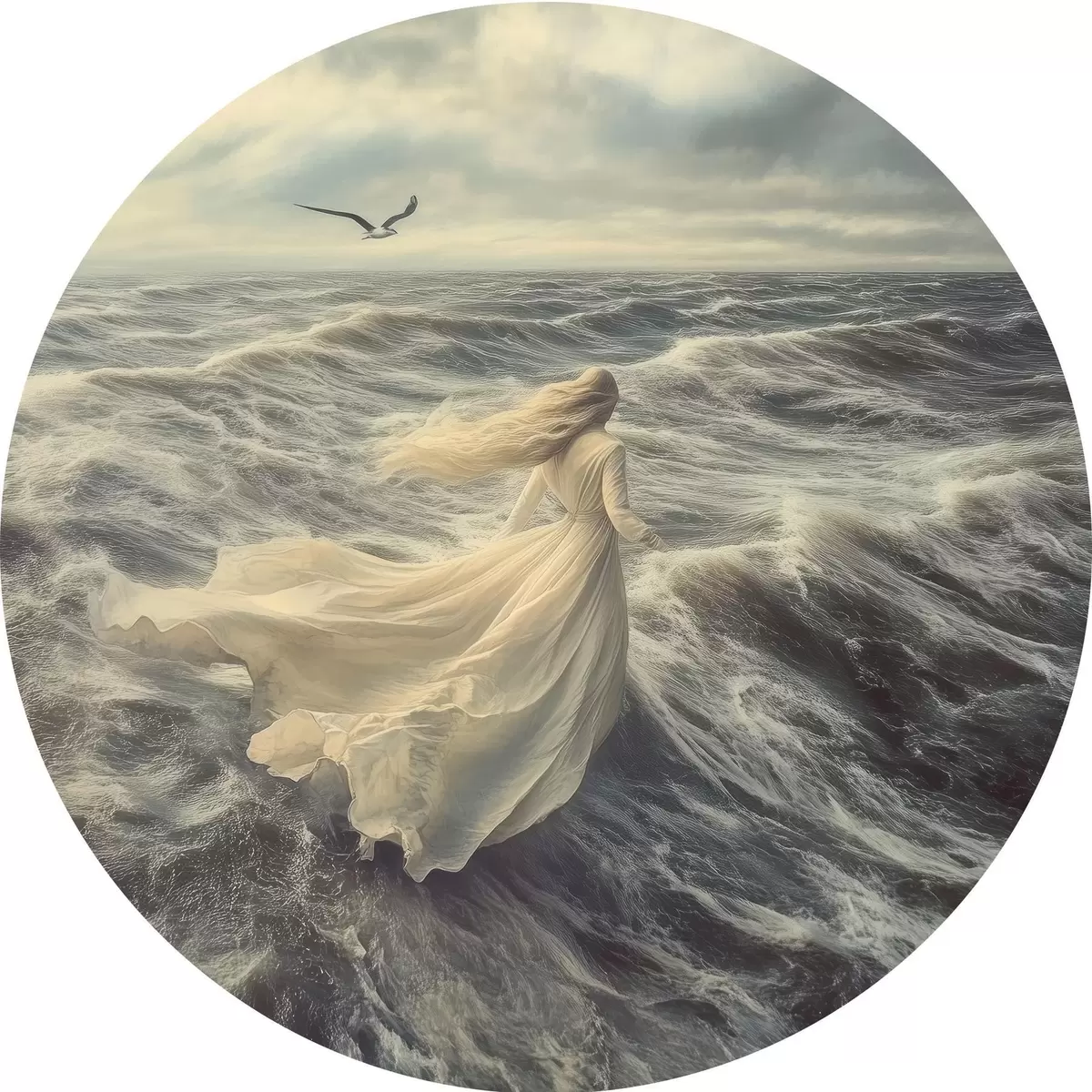 Picturi rotunde Fată pe valurile mării Nr r42986