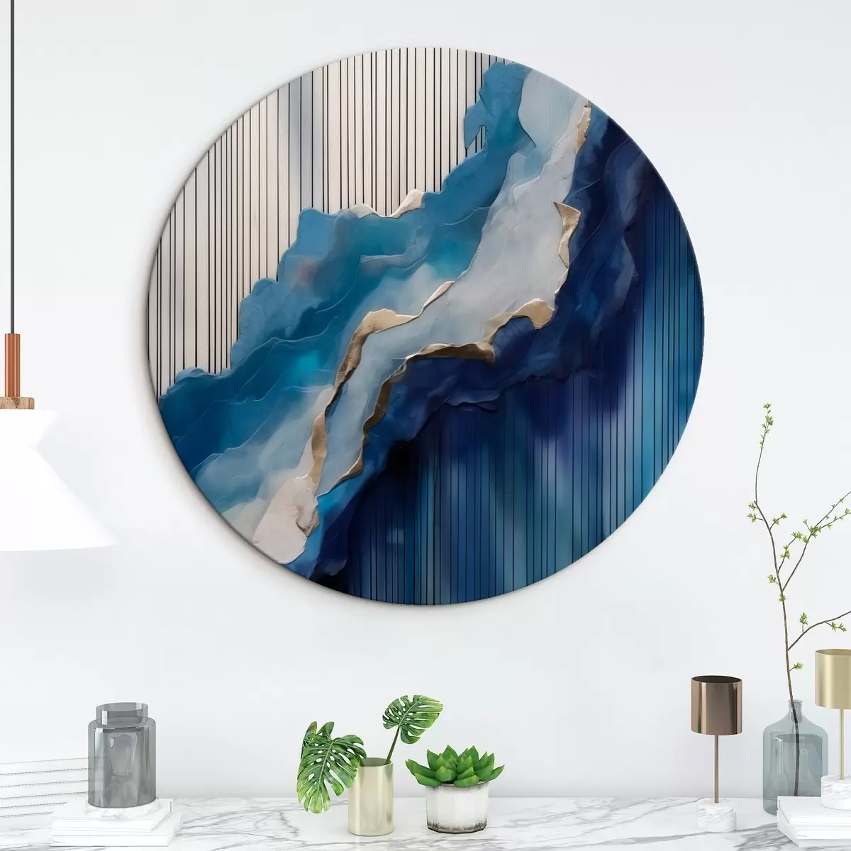 Picturi rotunde Texturi abstracte albastre cu linii în fundal r43002